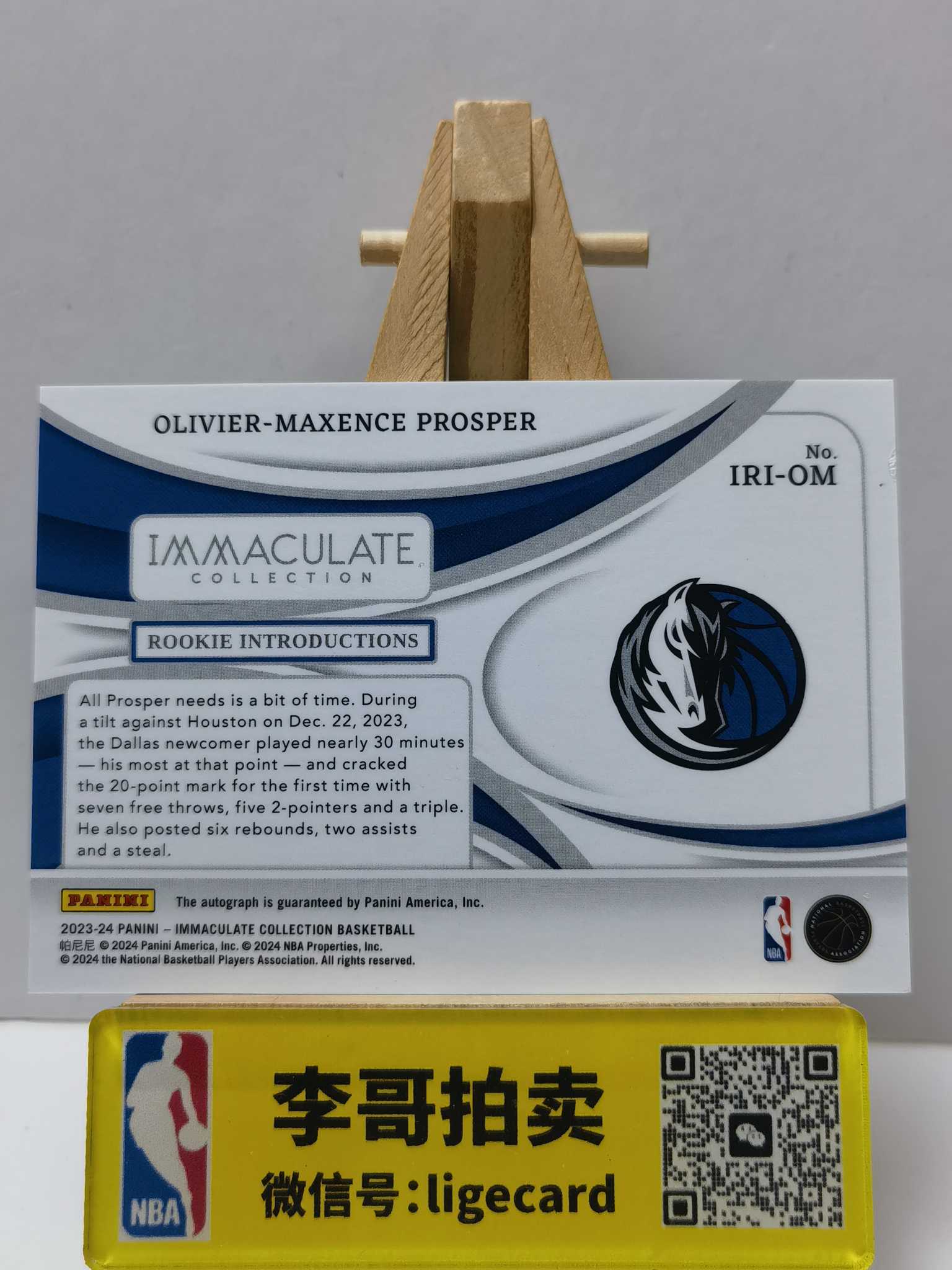 2023-24 Panini Immaculate Olivier Maxence Prosper 【李哥代卖】爱咪咪 奥利维耶马克桑斯普罗斯珀 99编 RC新秀 卡签签字 独行侠 Misty1117