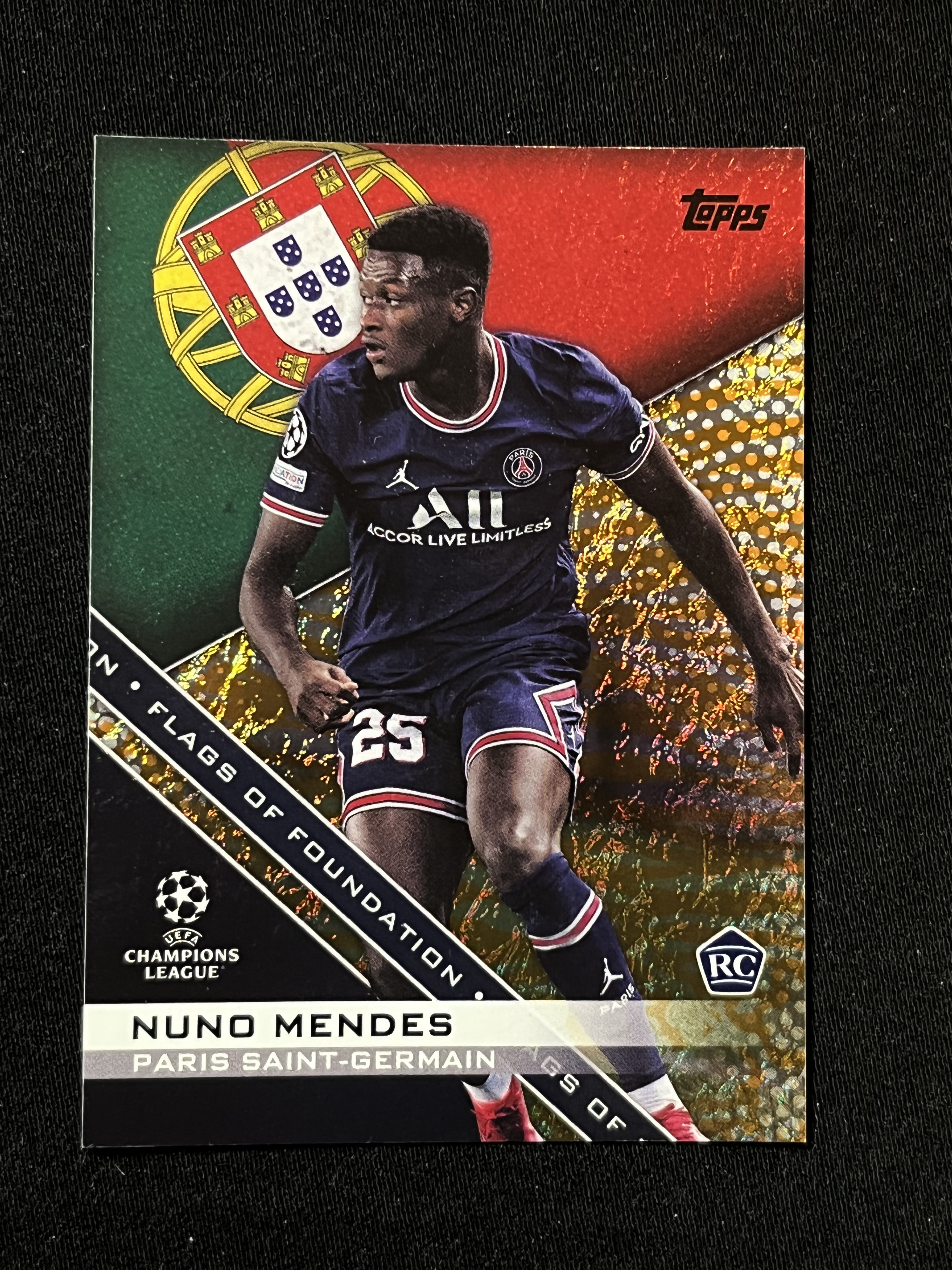 2021-22 TOPPS UCC 欧冠 大巴黎 Nuno Mendes 努诺 门德斯 新秀 RC base 折射 42/75 卡背钢印有瑕疵 HLS
