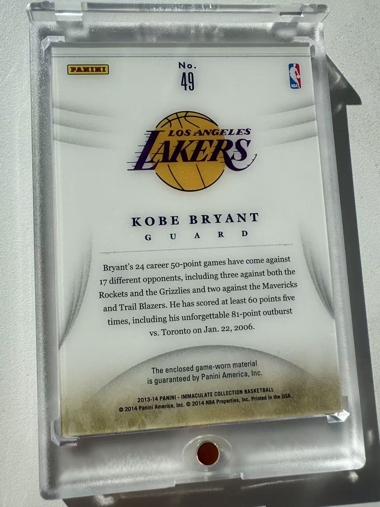 2013 Panini Immaculate Kobe Bryant 科比 布莱恩特 永远的传奇 爱咪咪 经典镜面 Patch 三色暴力切割 GW亲穿球衣