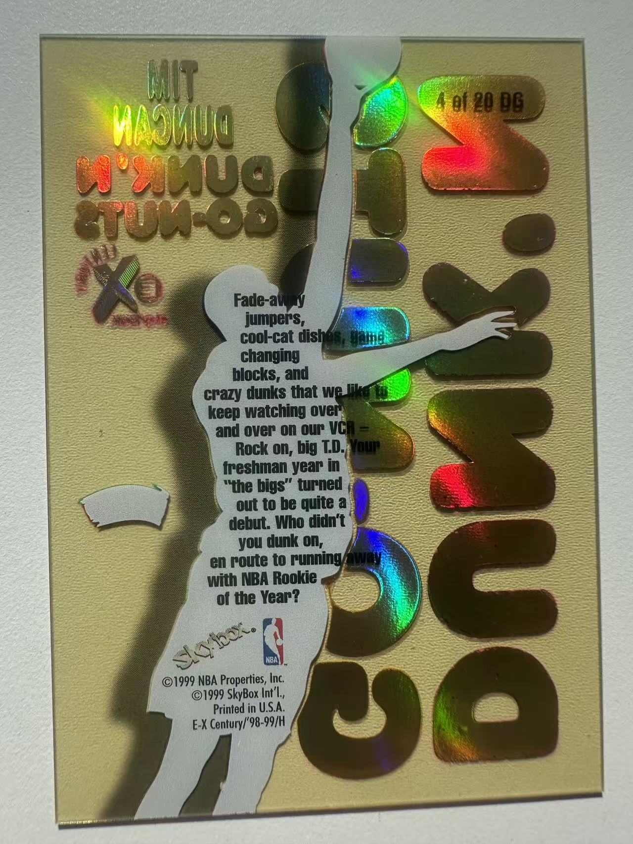 1999 SkyBox EX Tim Duncan 蒂姆 邓肯 史上第一大前锋 经典老特 Dunk’N Go-Nuts 胶片