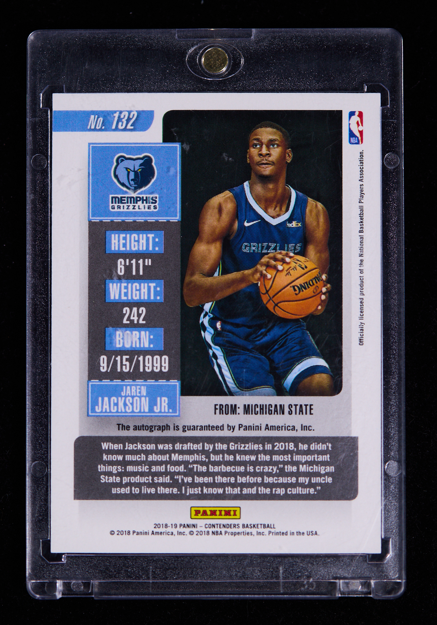 2018-19 Panini Contenders Jaren Jackson Jr. RC 新秀 小贾伦 杰克逊 签字 卡签 65编 季后赛球票 playoff 收藏凑套必备 包子18 【西门拍卖】