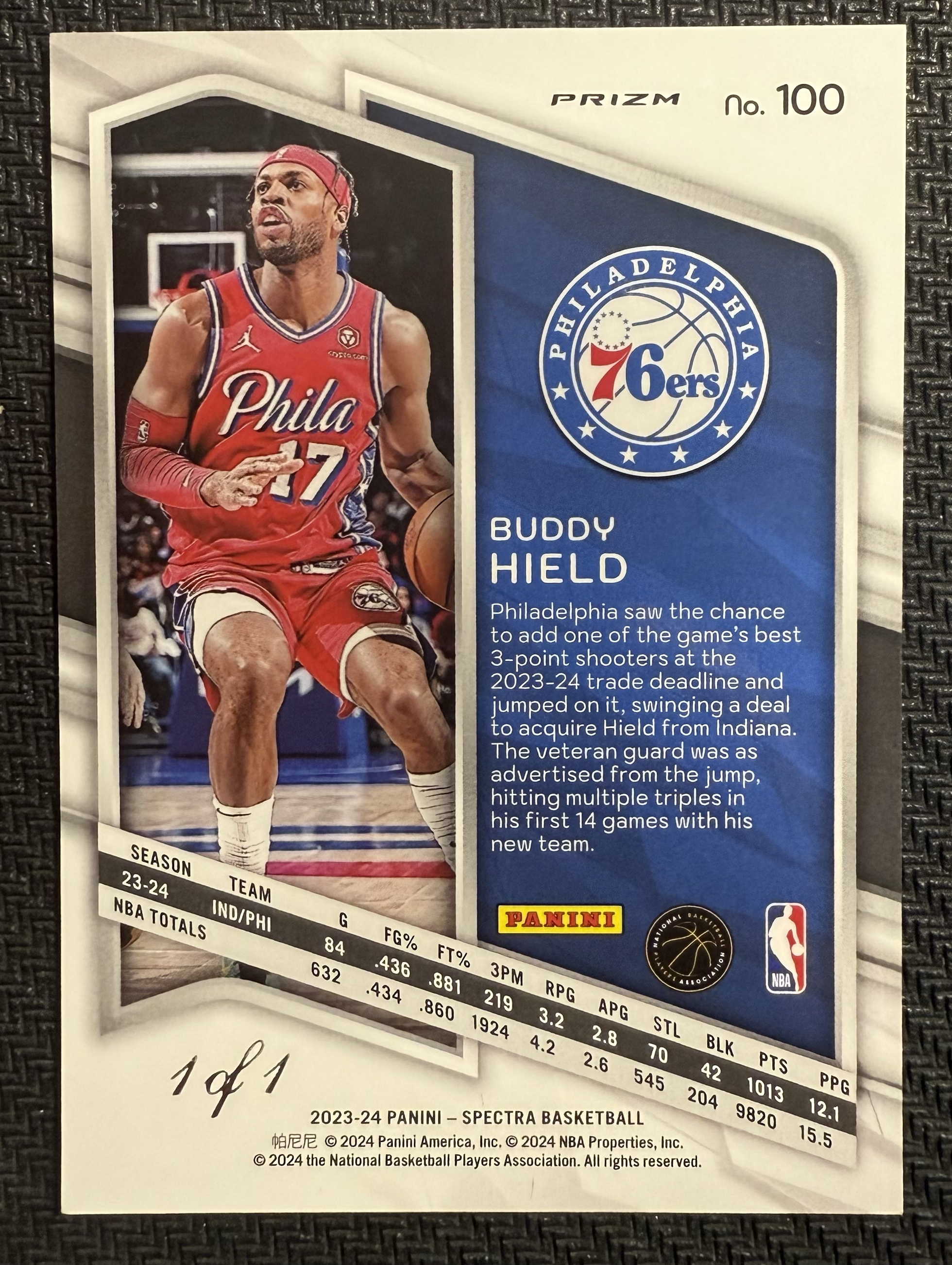 2023-24 Panini Spectra Buddy Hield 【九九代拍】76人 巴迪 希尔德 光谱 1/1 ofo 1编1 折射 黑hyper折 瑕疵如图 收藏必备 LU蔚蓝