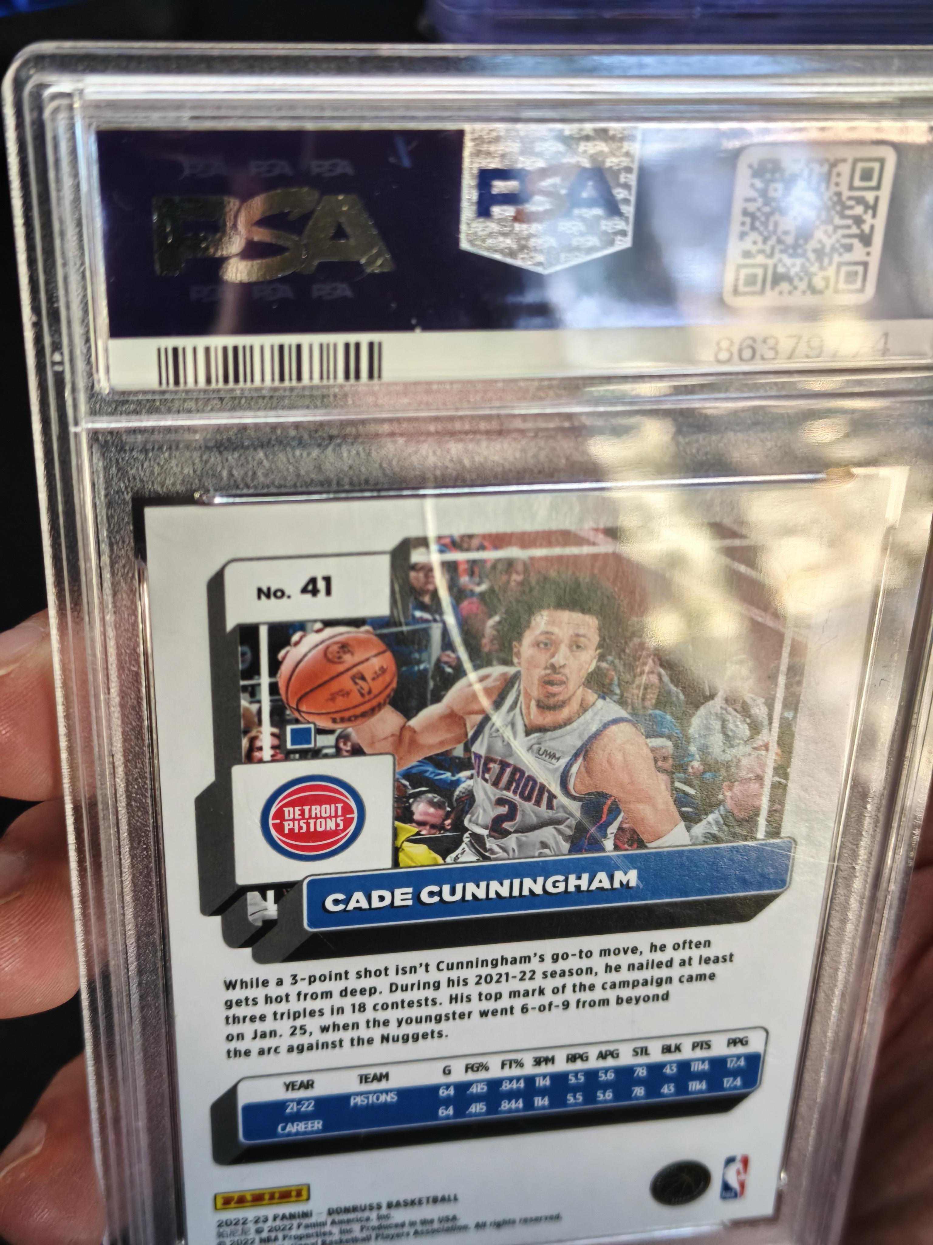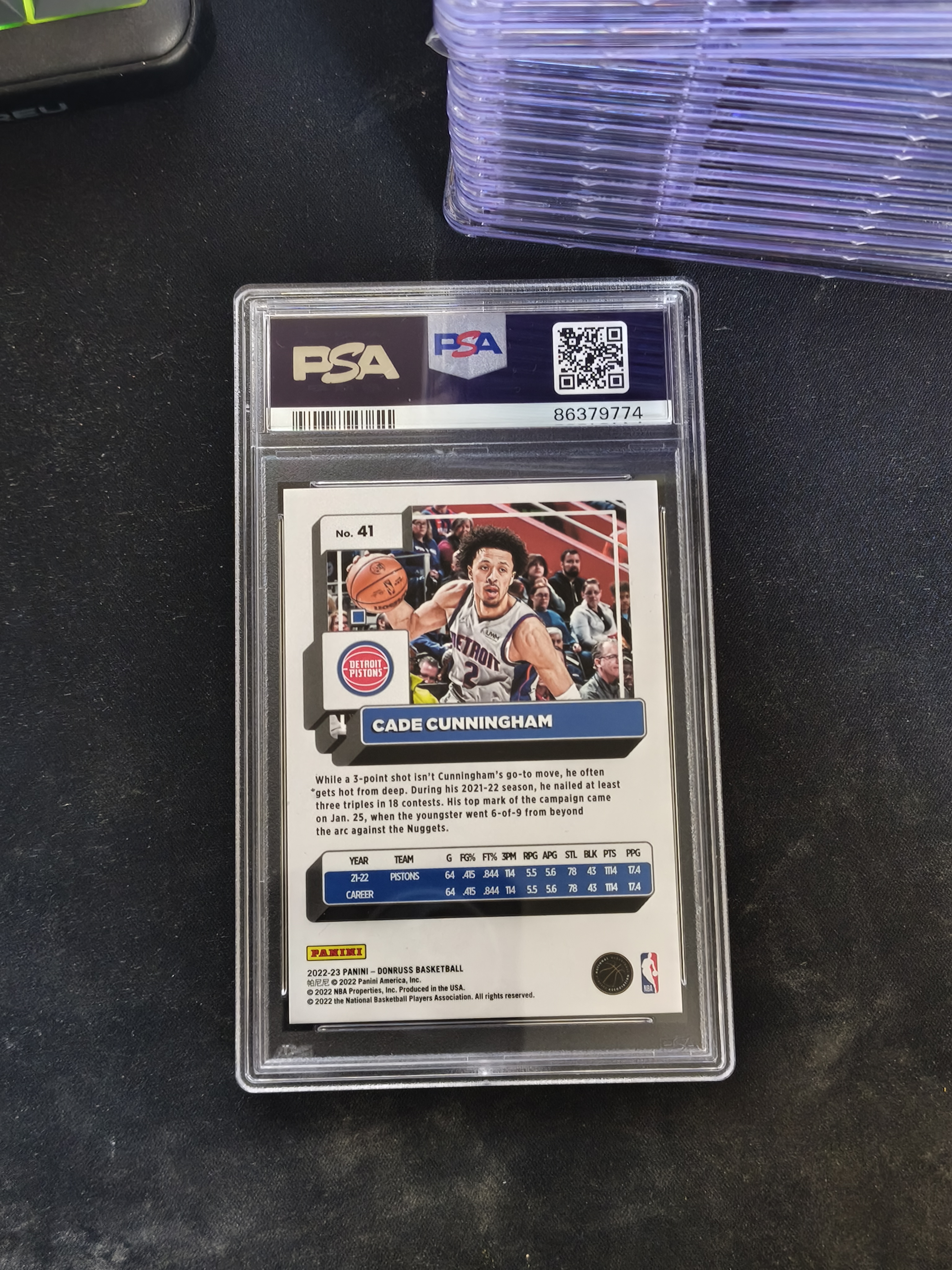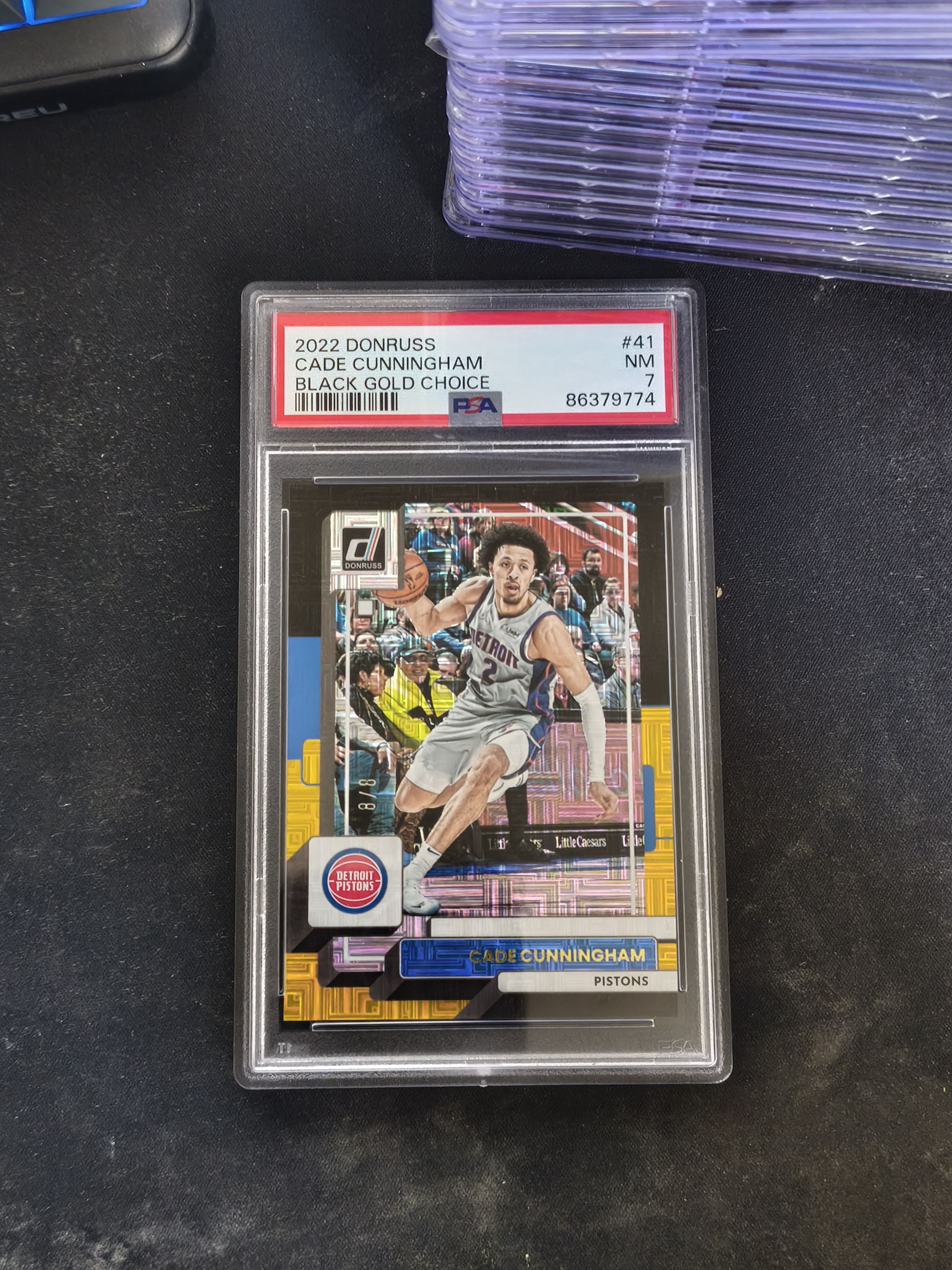2022-23 Panini Donruss Cade Cunningham #41 PSA7 凯德 坎宁安 康宁汉姆 Choice黑金 尾编 8/8编 壳子背面轻印