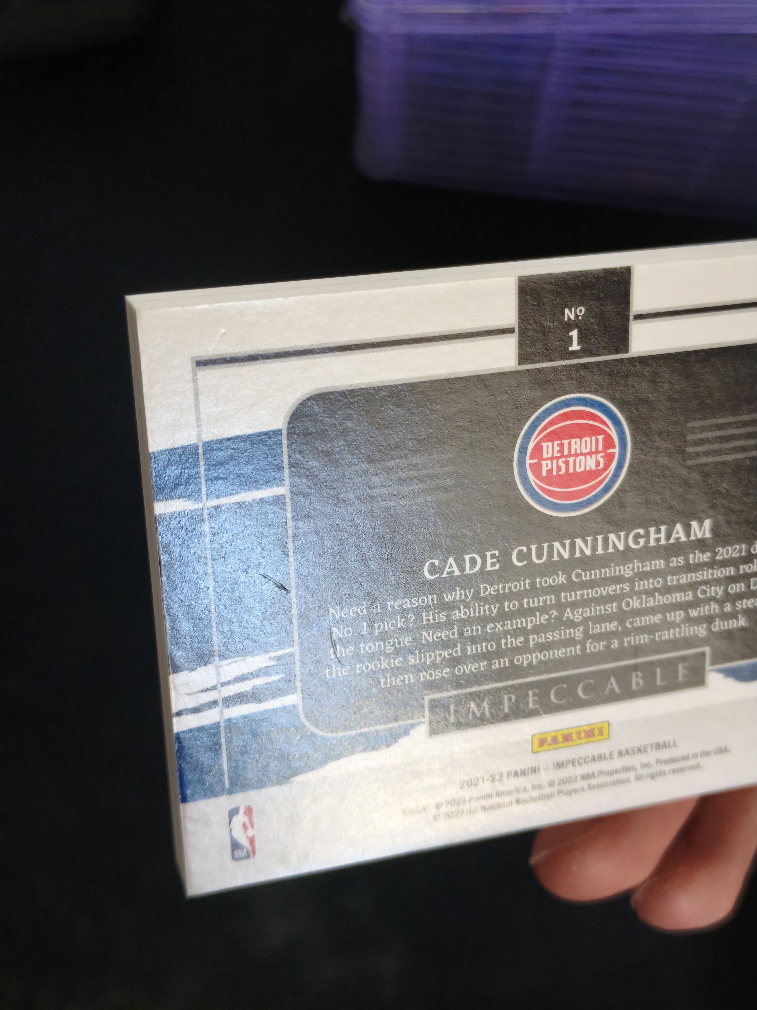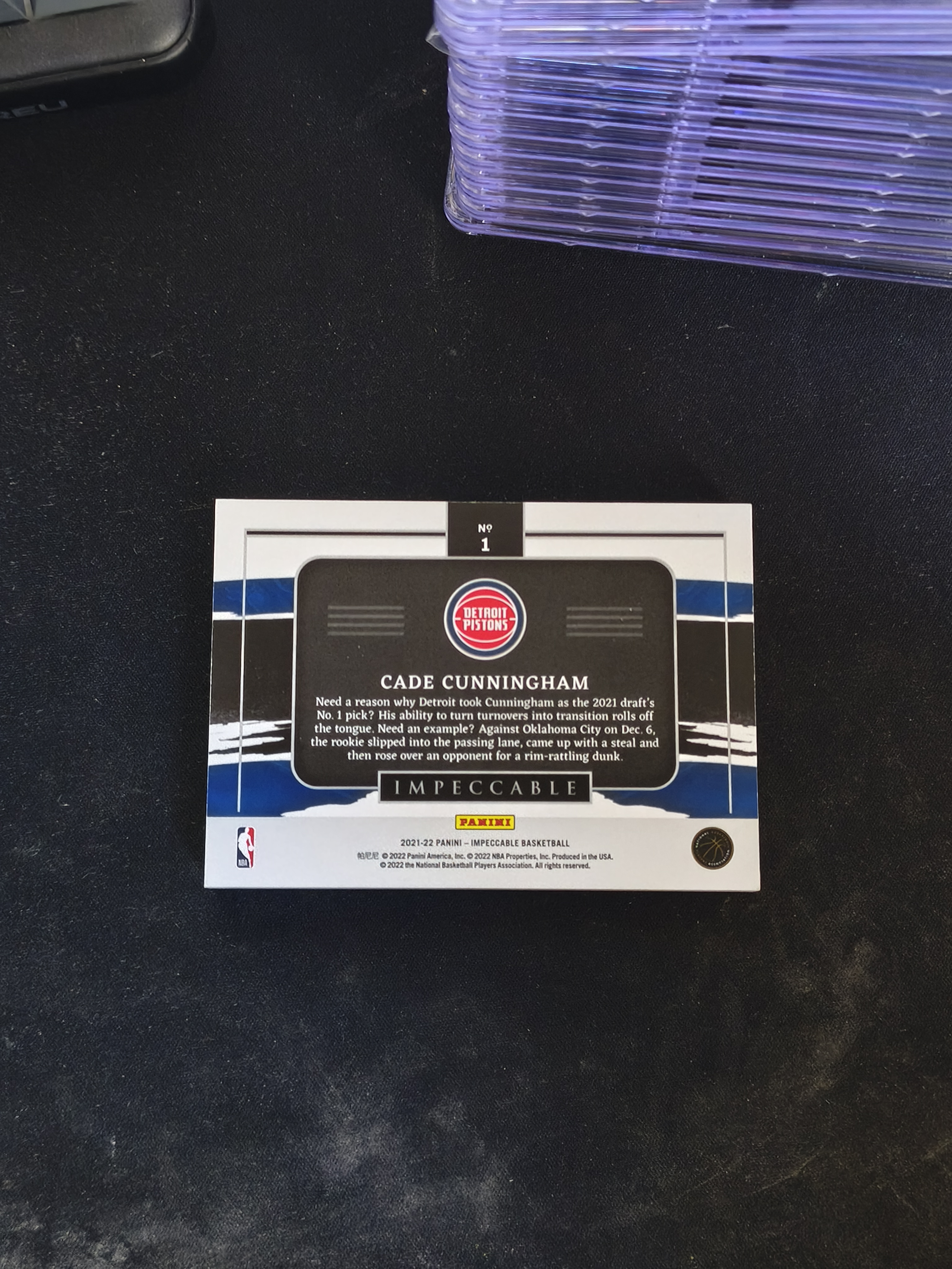 2021-22 Panini Impeccable Cade Cunningham RC #1 凯德 坎宁安 康宁汉姆 11连胜MVP大热候选 新秀年 小真金银块 首编 1/10编 微白边银块轻微氧化