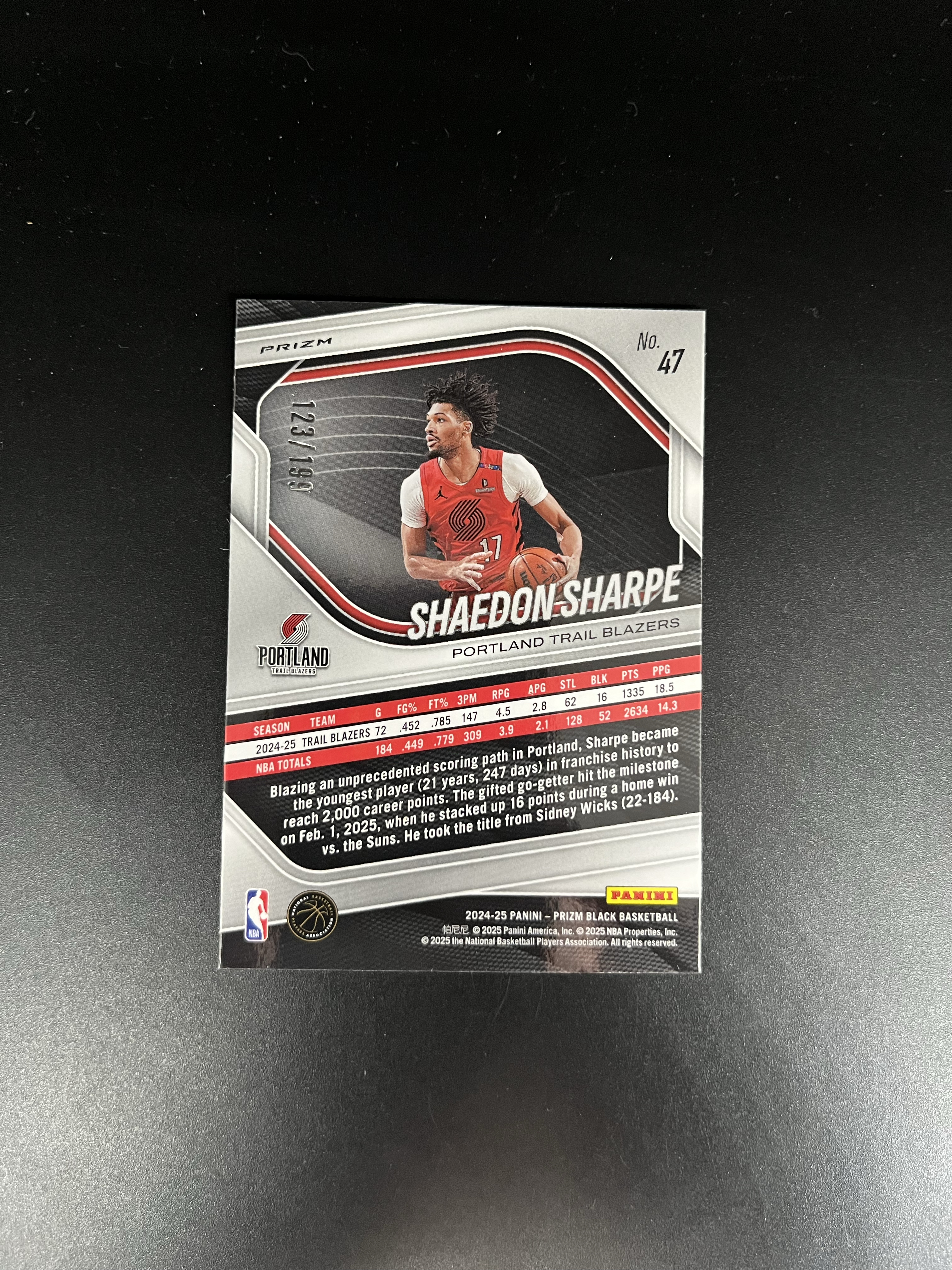 2024-25 Panini Prizm Black Shaedon Sharpe 【拉姆代卖】谢登 夏普 杨瀚森队友 /199编 蓝折 PZ 折射 卡品如图 鲁【star】
