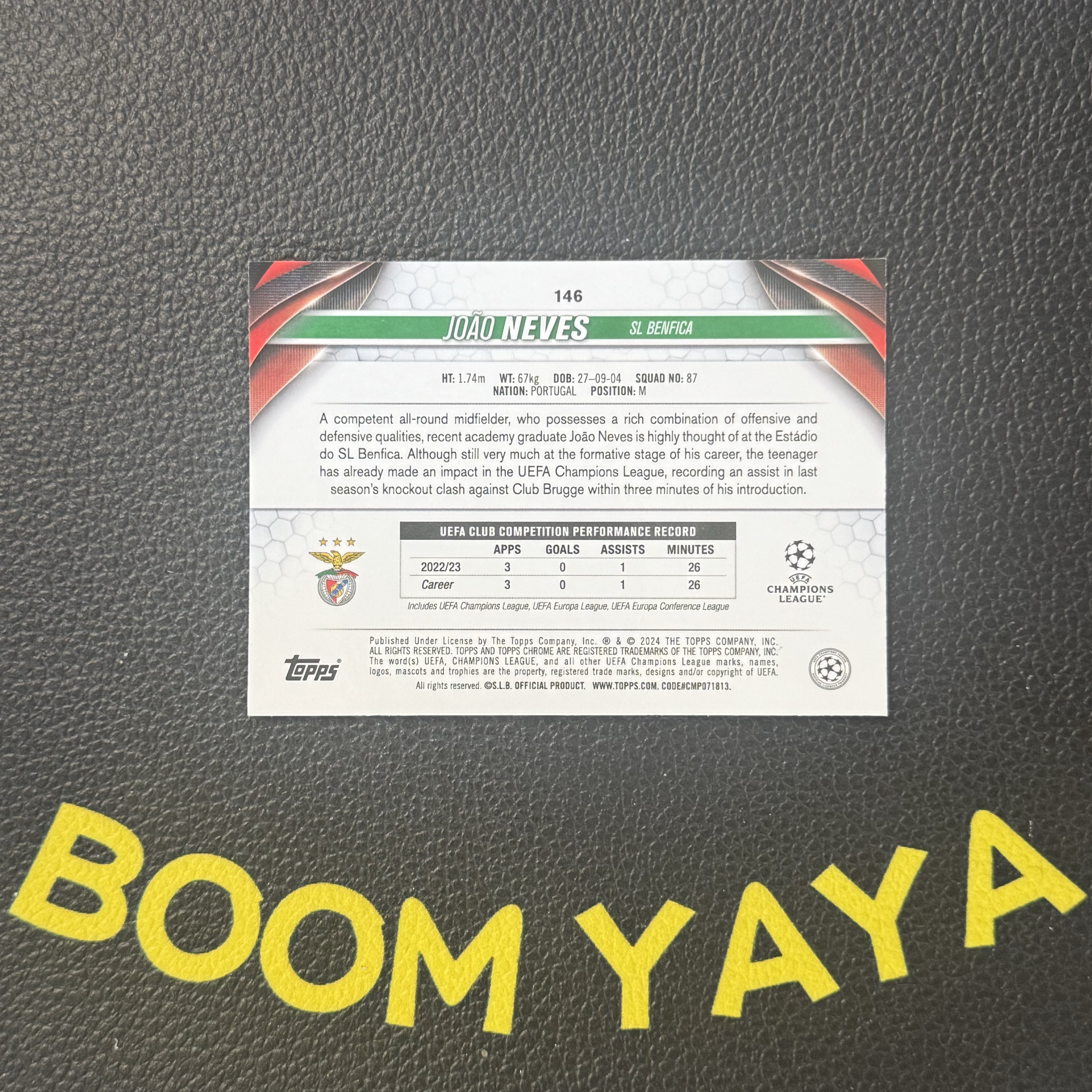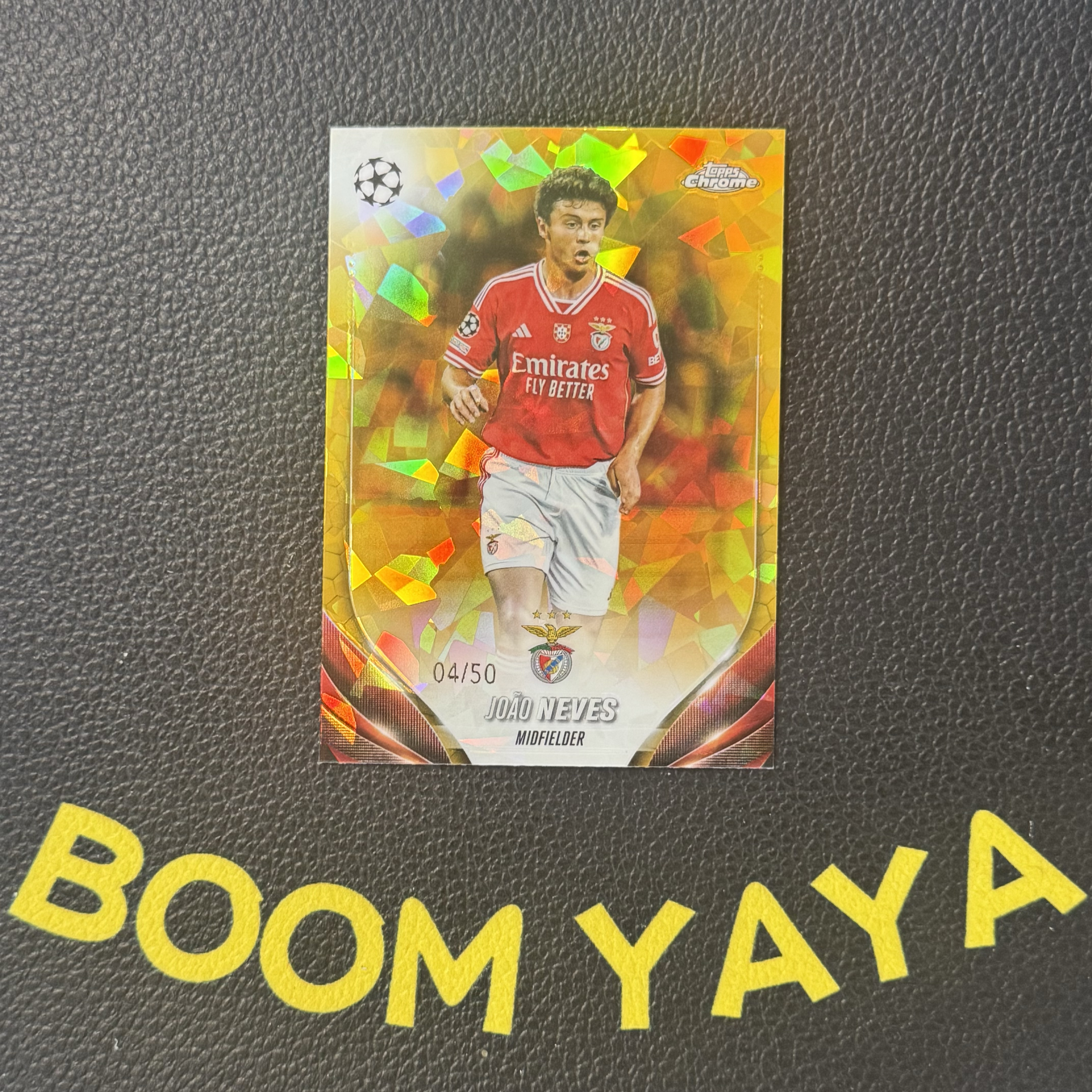 【Boom YaYa】2023-24 Topps chrome 蓝宝石 Joao Neves 若昂 内维斯 本菲卡 欧冠 4/50编 金碎冰折 默认微瑕 不累计 不到付