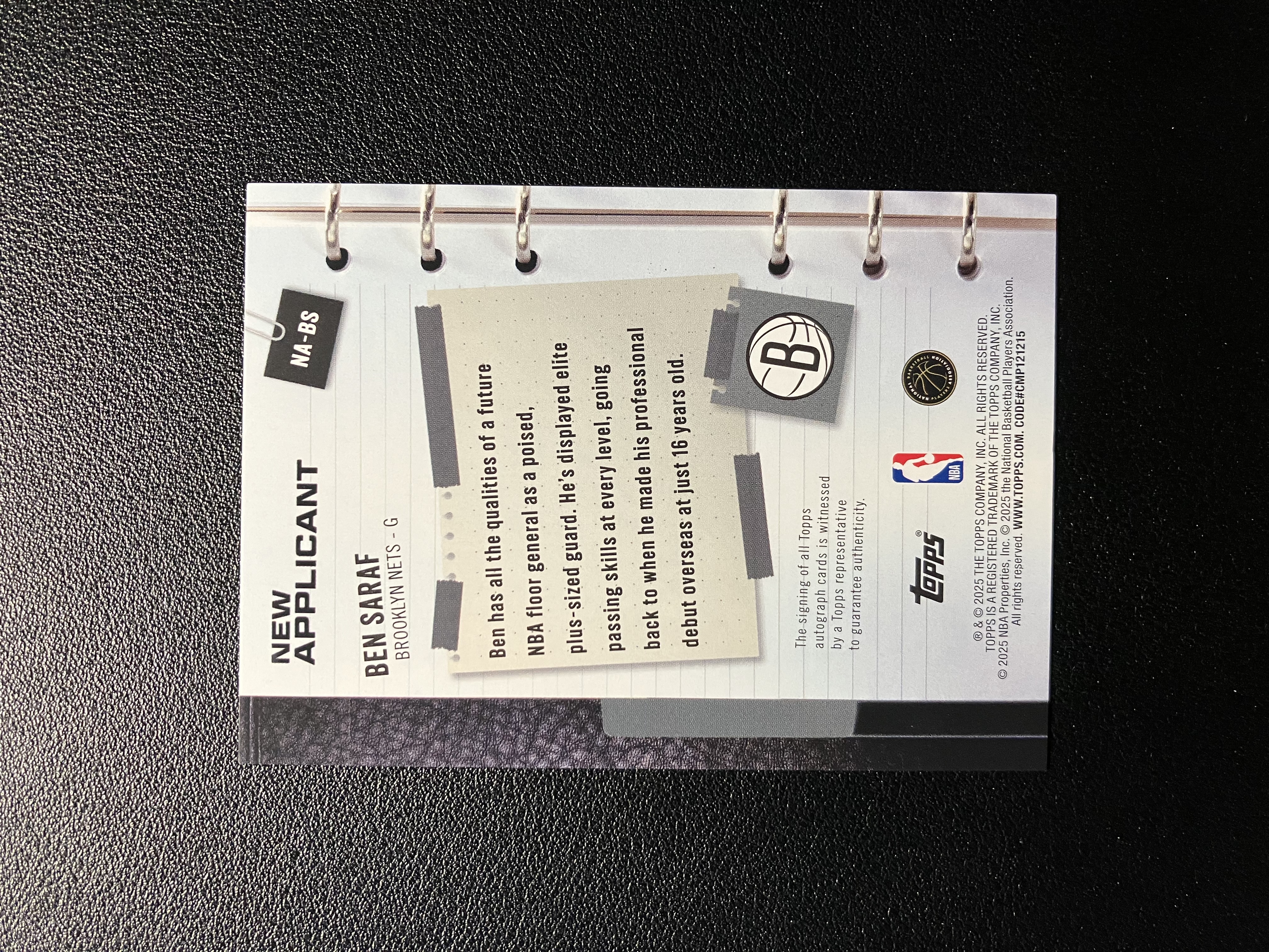 2025 Topps Flagship Basketball Ben Saraf RC 元年 本-萨拉夫 银像素折 NA新晋签 签字 RC新秀 篮网 得分后卫 卡品如图 B227