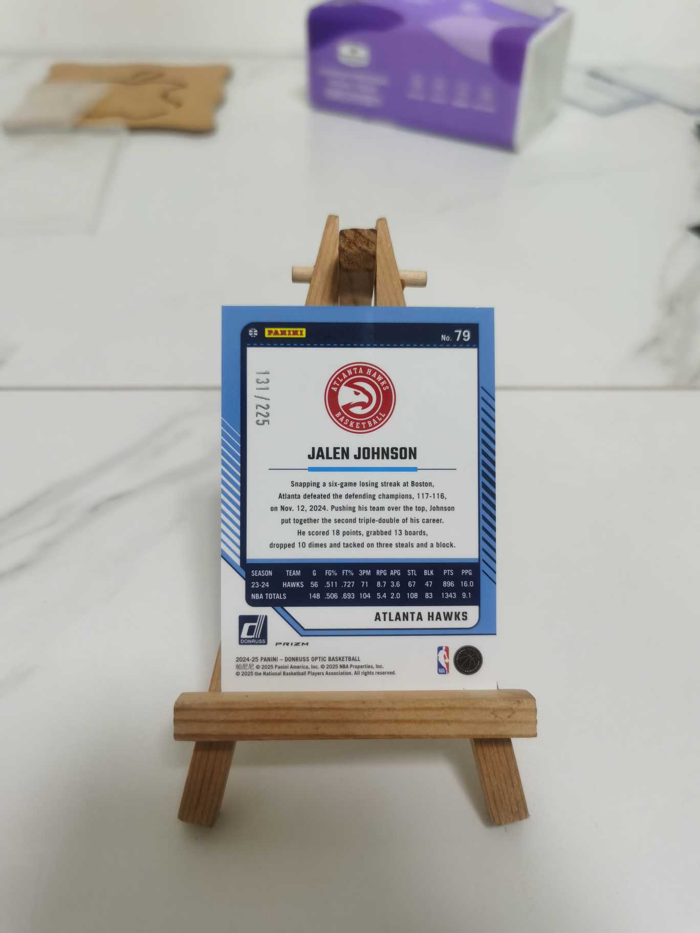 2024-25 Panini Optic Jalen Johnson 【拖油瓶代卖】杜蕾斯op 杰伦约翰逊 225编 蓝折 base 老鹰 卡品如图 文班亚马卡斯尔前辈 #少年