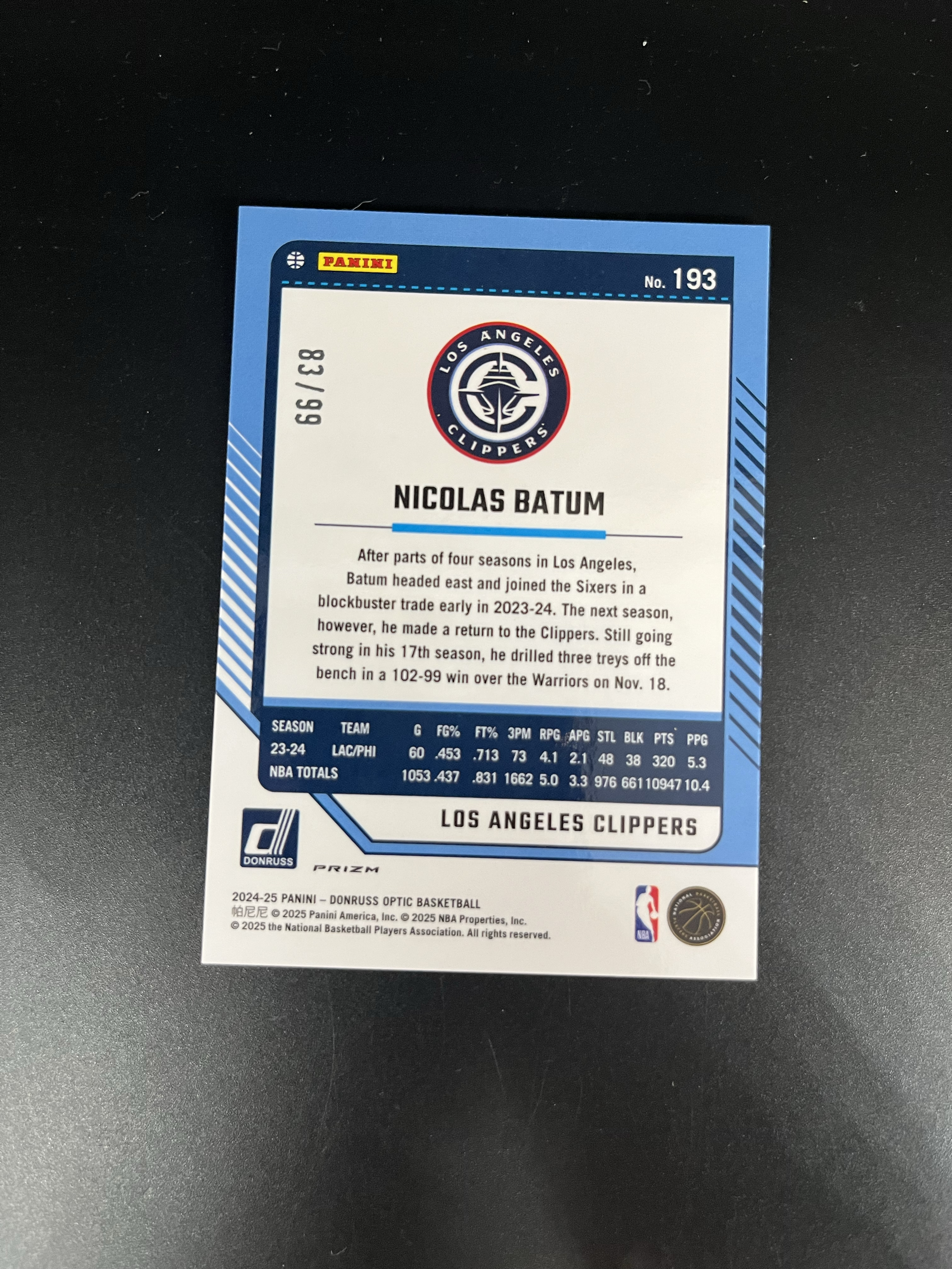 【拉姆代卖】24-25 杜蕾斯 Optic 快船队 Nicolas Batum 尼古拉斯 巴图姆 99编 红折 折射 卡品如图 鲁【mh】