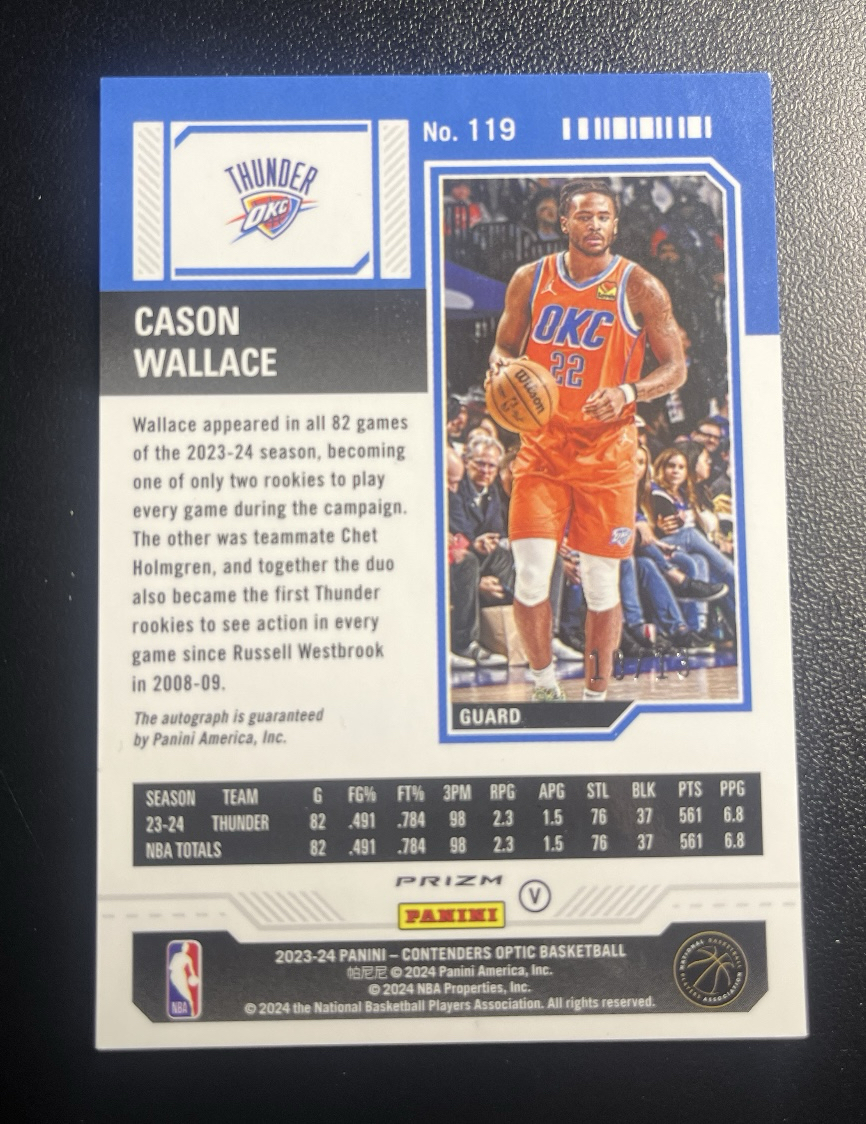 2023-24 Panini Contenders Optic Cason Wallace 【拉姆代卖】凯森 卡森 华莱士 球票 新秀RC 签字 卡签 新秀签字 折射 13编 超低编 雷霆 【宏洋】
