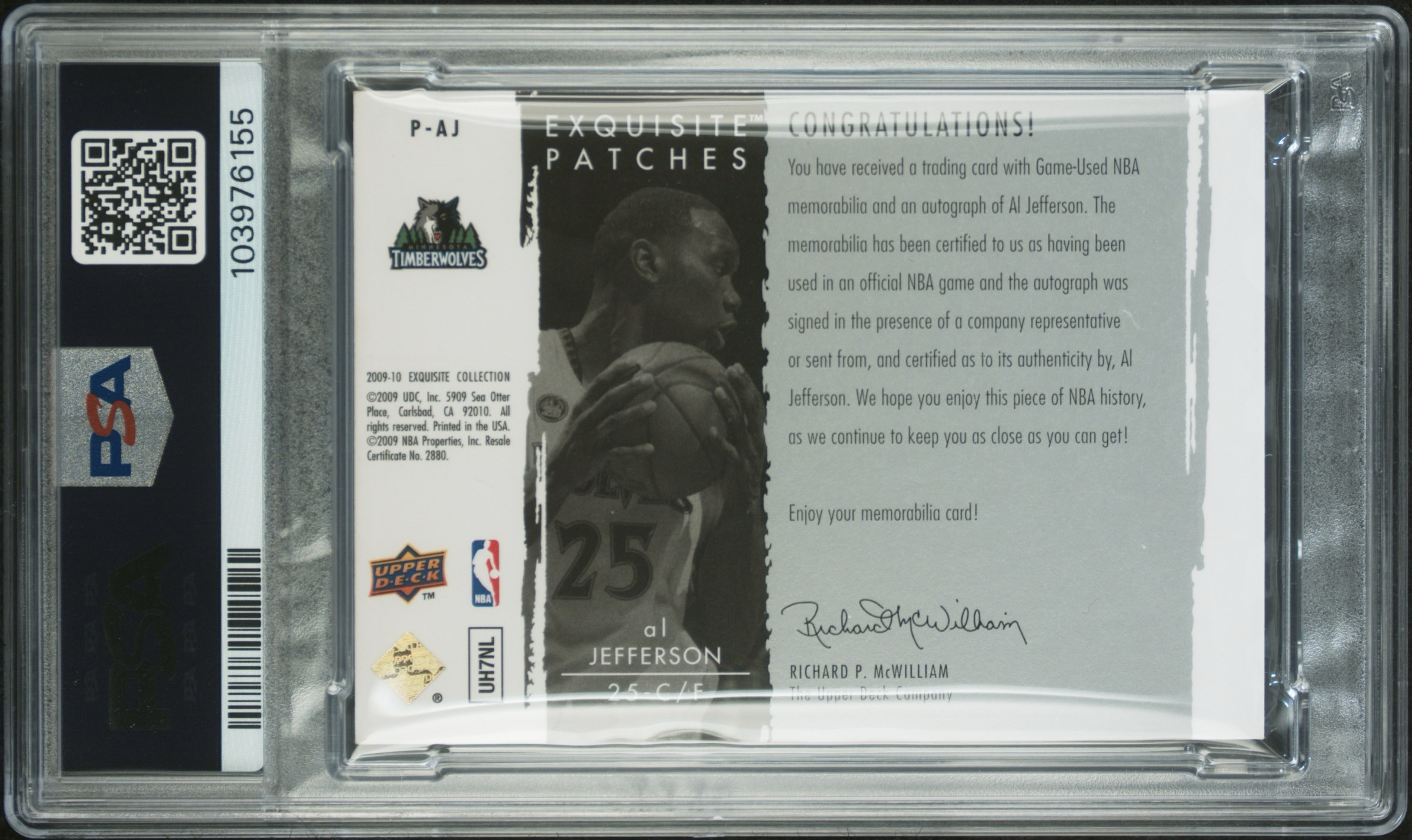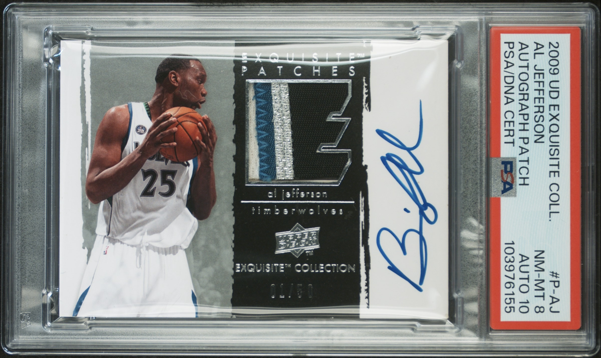 [qz拍卖]2009-10 Ud 木盒 Exquisite 森林狼 艾尔 杰弗森 Al Jefferson 1/50编Patch签字 PA 首编 落场物料 PSA8/10分墨迹 评级卡 专收必备