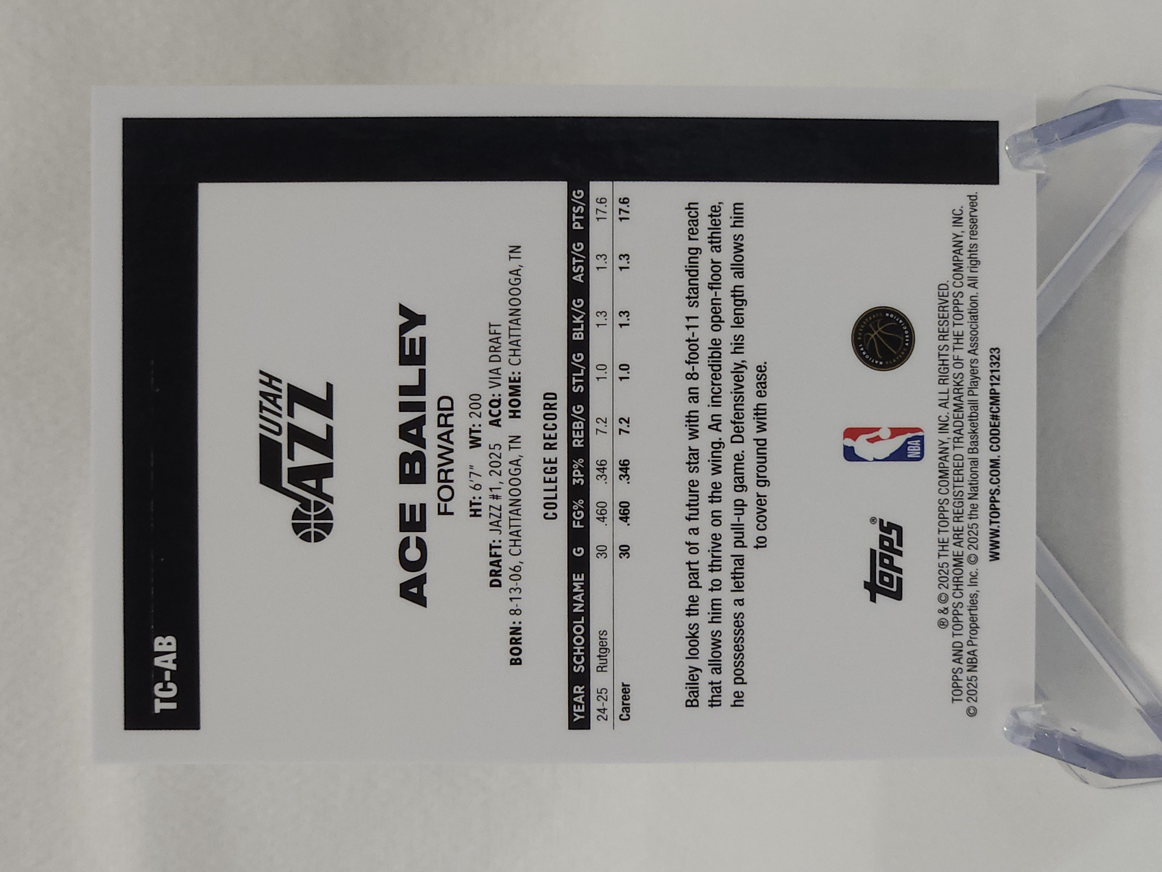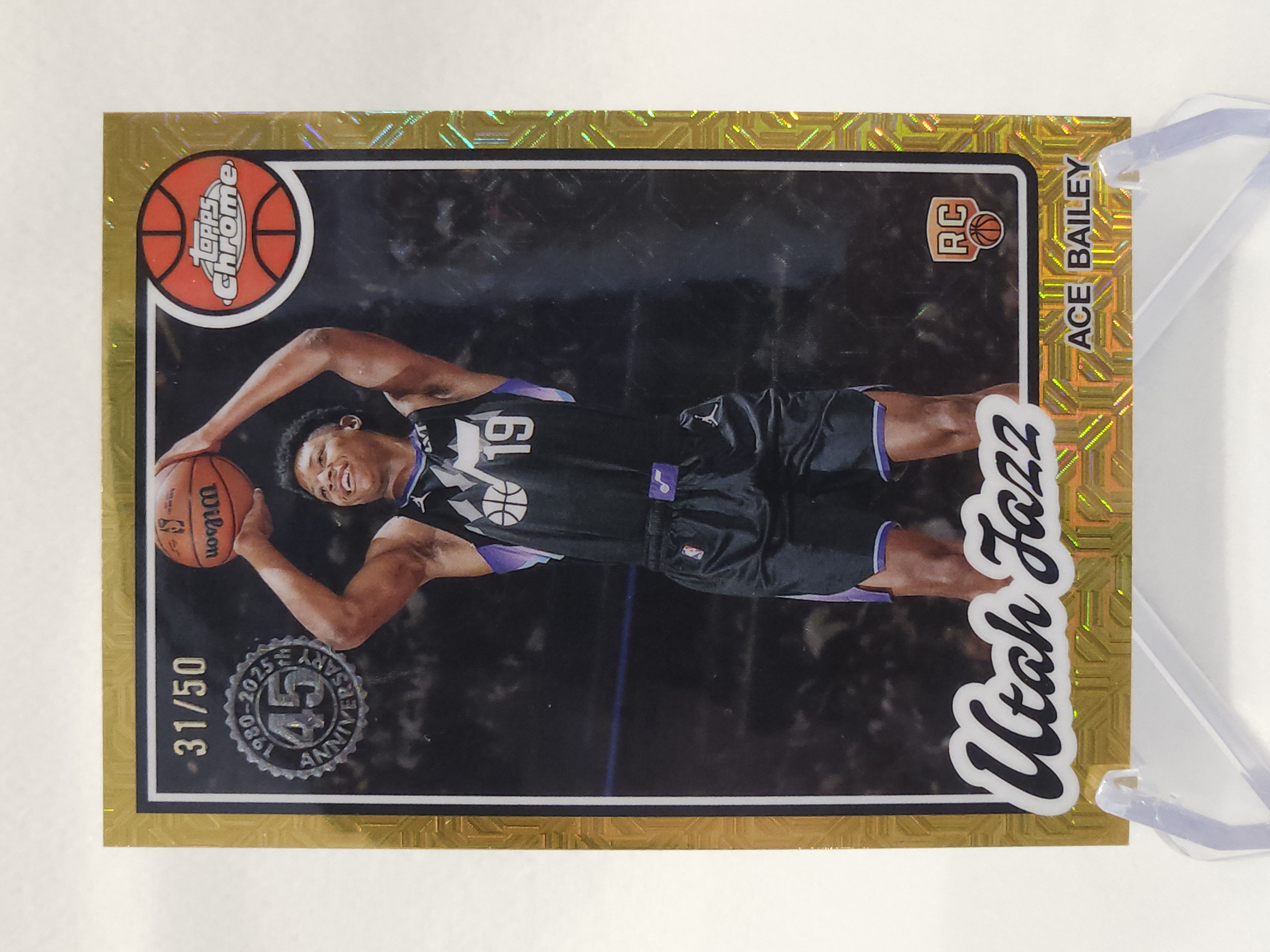 2025-26 Topps Chrome Ace Bailey RC 【流星代拍】TC 45周年 新秀 埃斯 艾斯 贝利 爵士 31/50编 金mojo折 反同背 难得 卡品如图 帅比 B