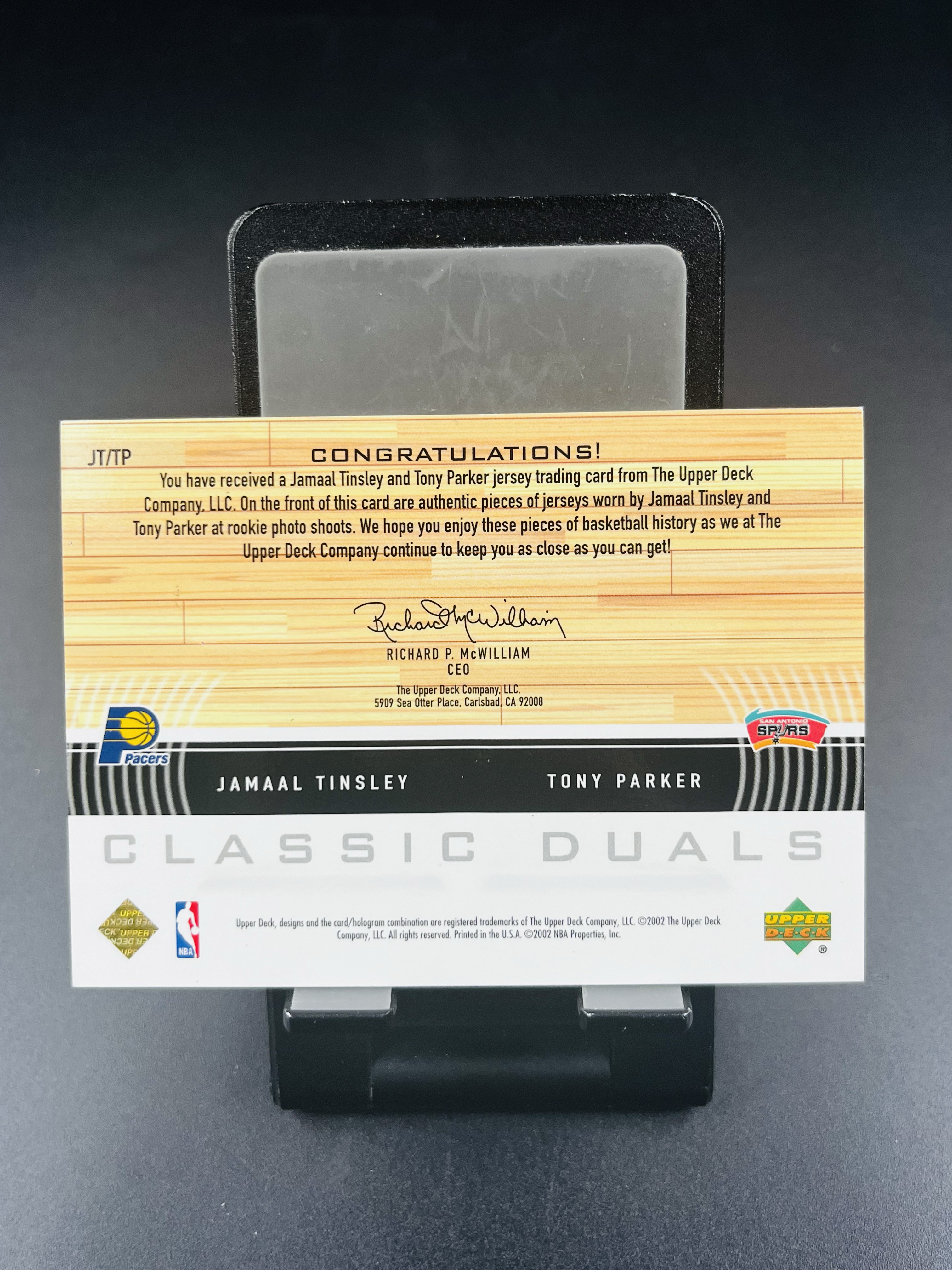 2001-02 Upper Deck Company Tony Parker UD 马刺队 托尼 帕克 汀斯利 双人 实物卡 新秀球衣卡 大比例箱货   【鸟叔拍卖】jk