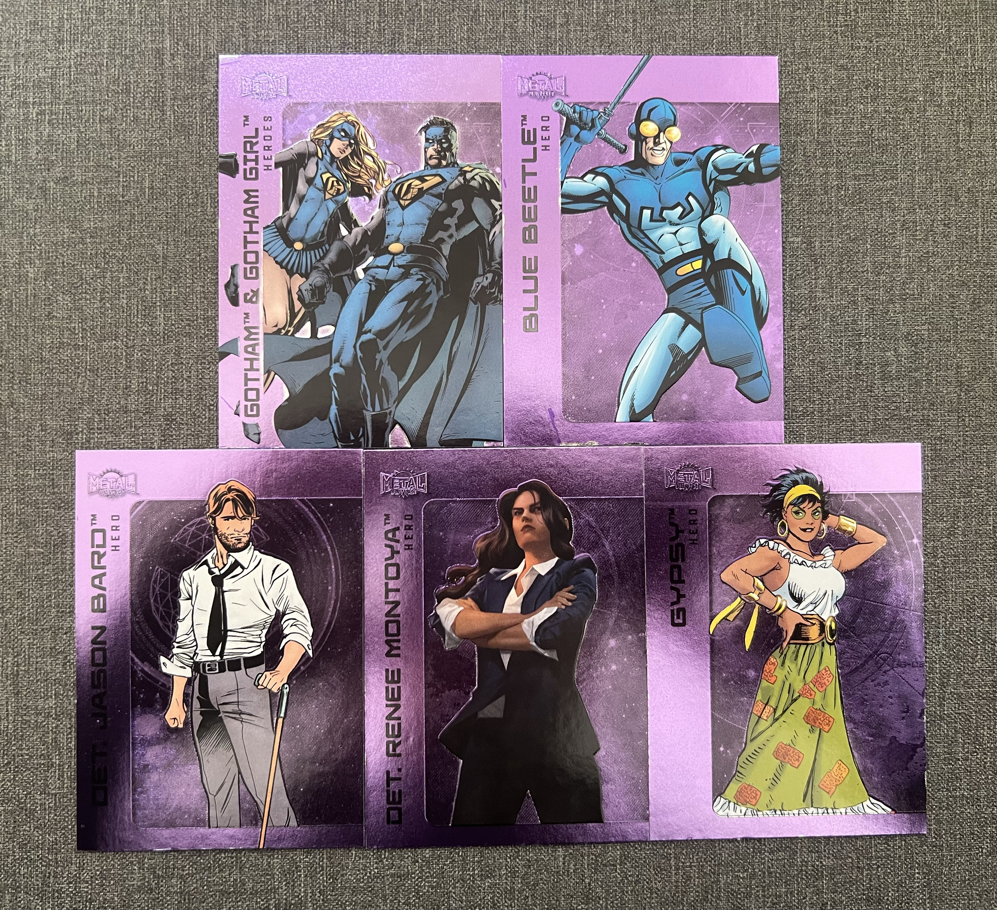 2025 SkyBox DC Universe Batman 元年DC Metal 蝙蝠侠 巴德警探 蓝甲虫 吉普赛 哥谭 哥谭少女 蒙托亚 紫平行 5张打包 部分瑕疵如图 品相如图