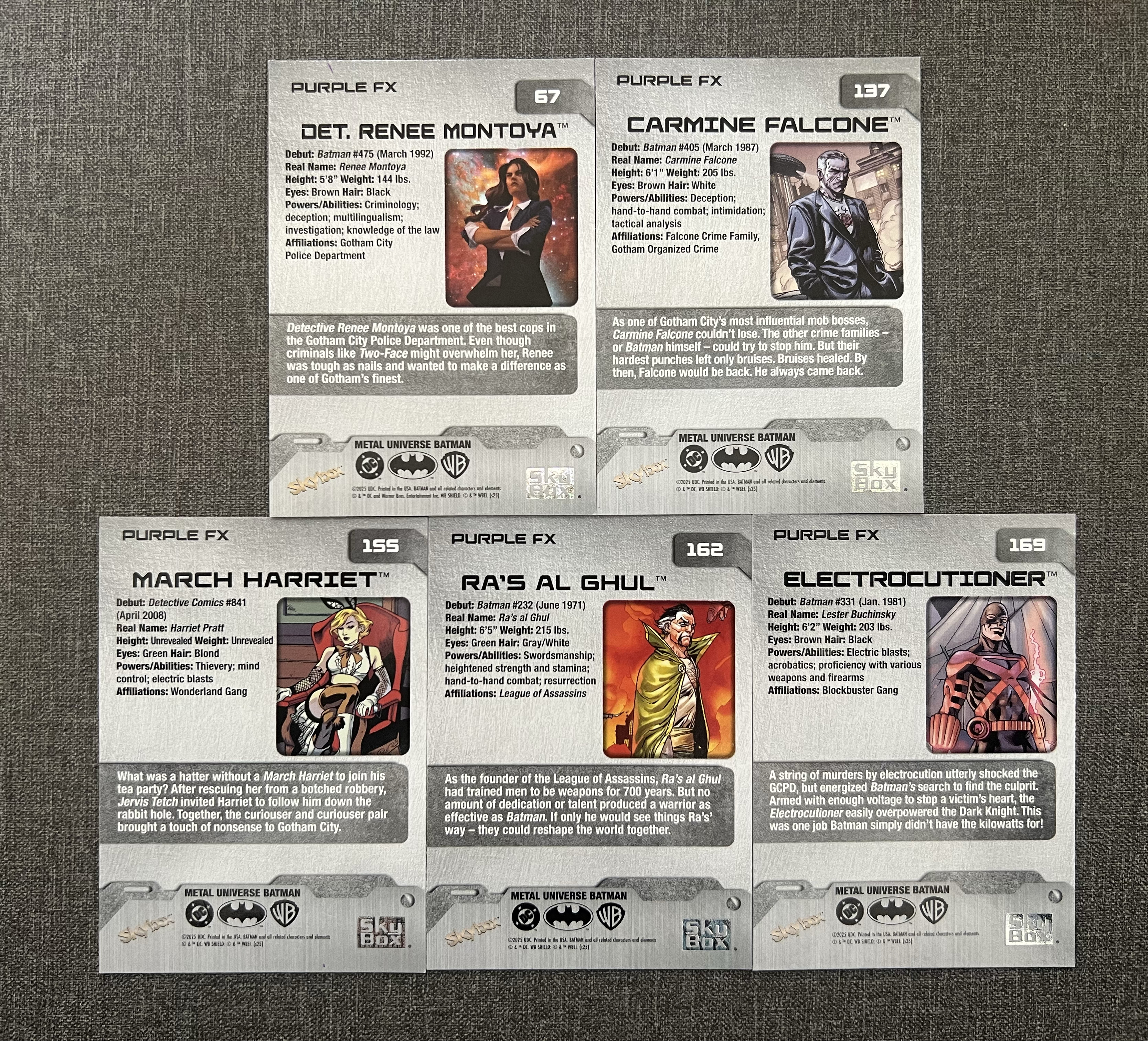 2025 SkyBox DC Universe Batman 元年DC Metal 蝙蝠侠 蒙托亚 法尔科内 三月哈丽特 忍者大师 电刑者 紫平行 5张打包 品相如图