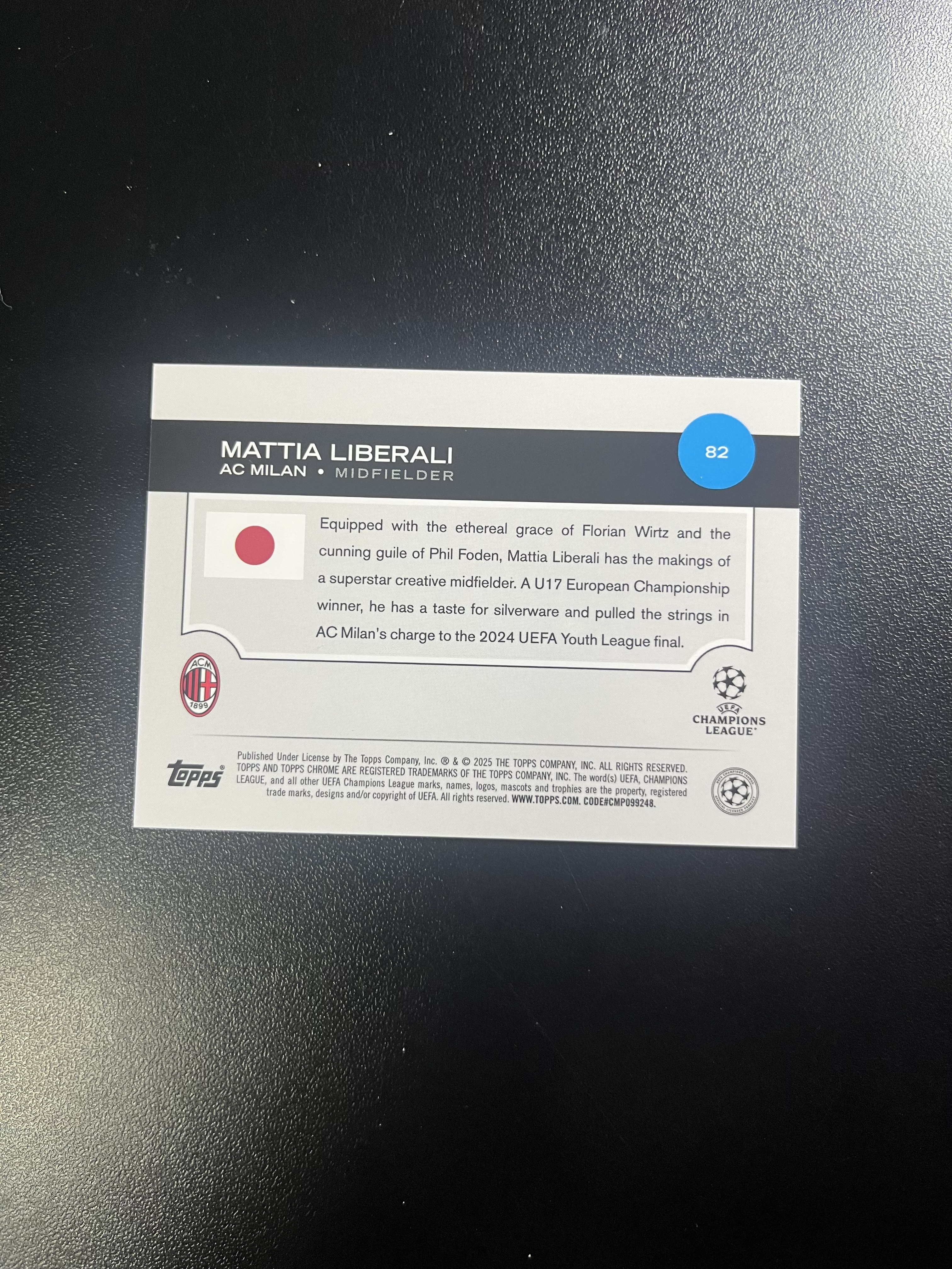 2025 Topps Chrome Mattia Liberali RC 【拉姆代卖】欧冠 TC 日本限定 AC米兰 马蒂亚 利贝拉利 新秀 蓝mojo折 75编 卡品如图 鲁【ring】