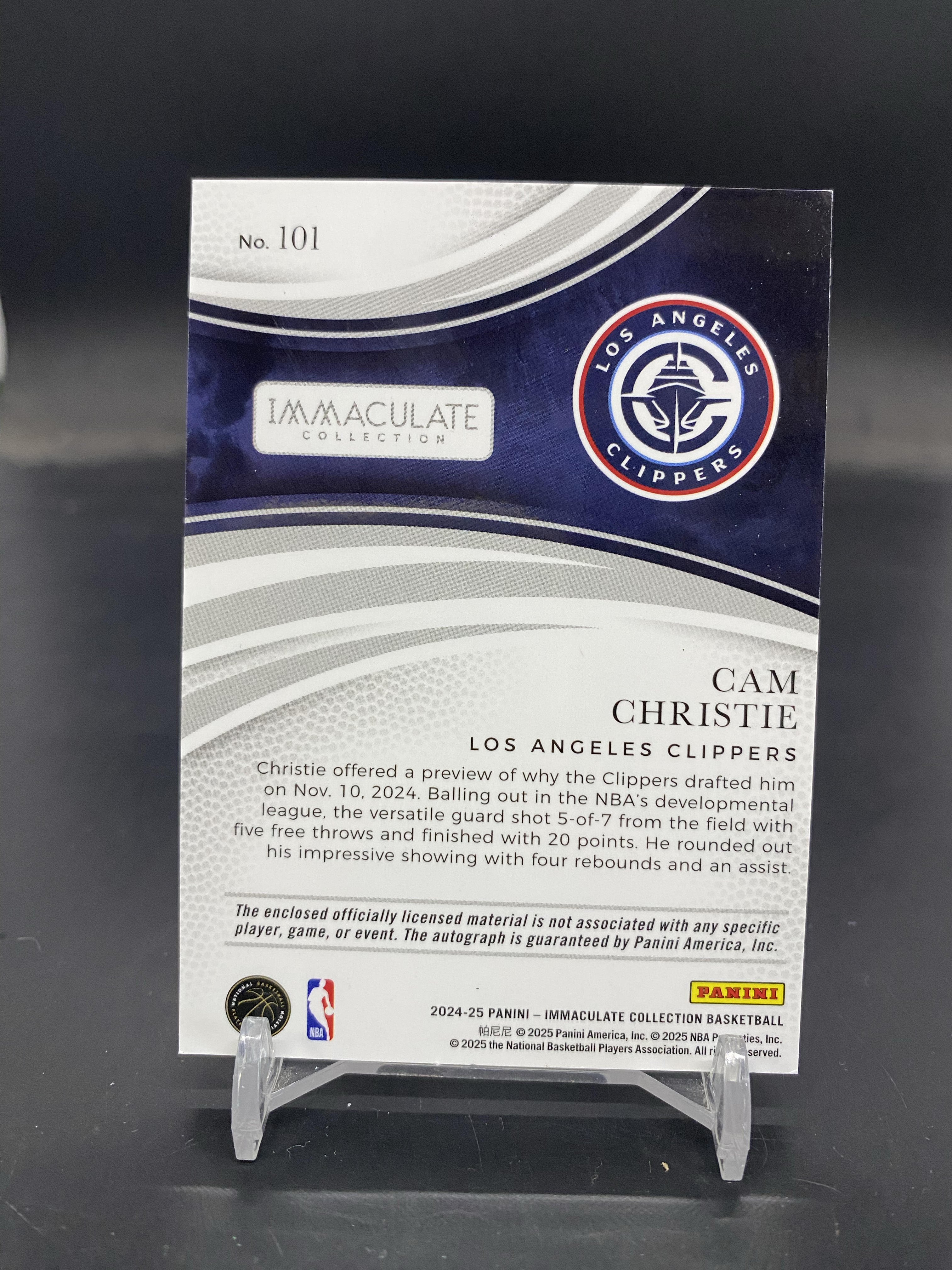 2024-25 Panini Immaculate Cam Christie RC 爱咪咪 快船新秀 卡姆 克里斯蒂 03/15编 减法同背 低编 RPA 单窗球衣签字卡 卡签 签名 卡品如图「80」