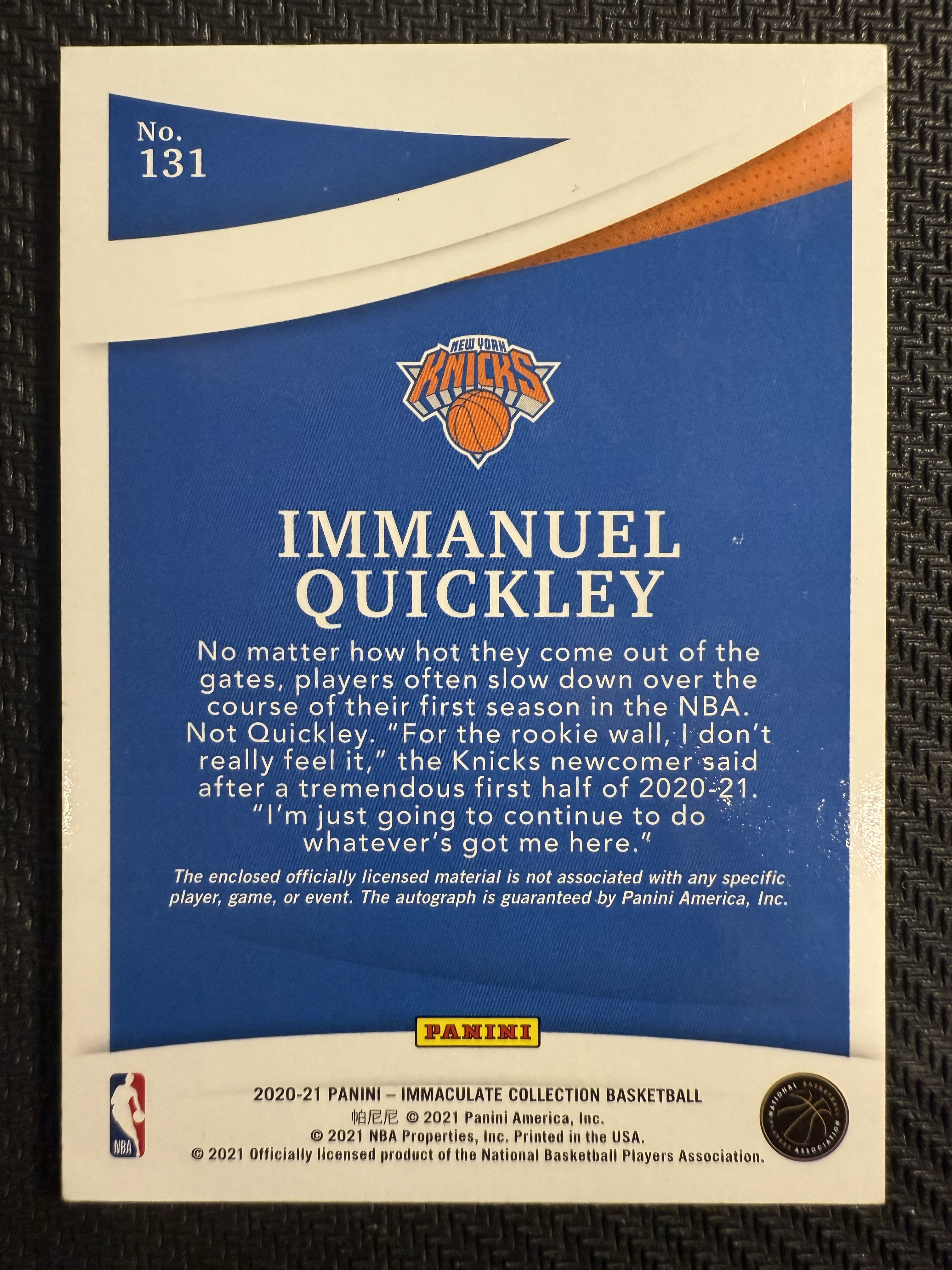 2021-22 Panini Immaculate Immanuel Quickley RC 【九九代拍】尼克斯 奎克利 新秀 RC imm 签字 卡签 rpa 10编 首编 瑕疵如图 收藏必备 迷藏