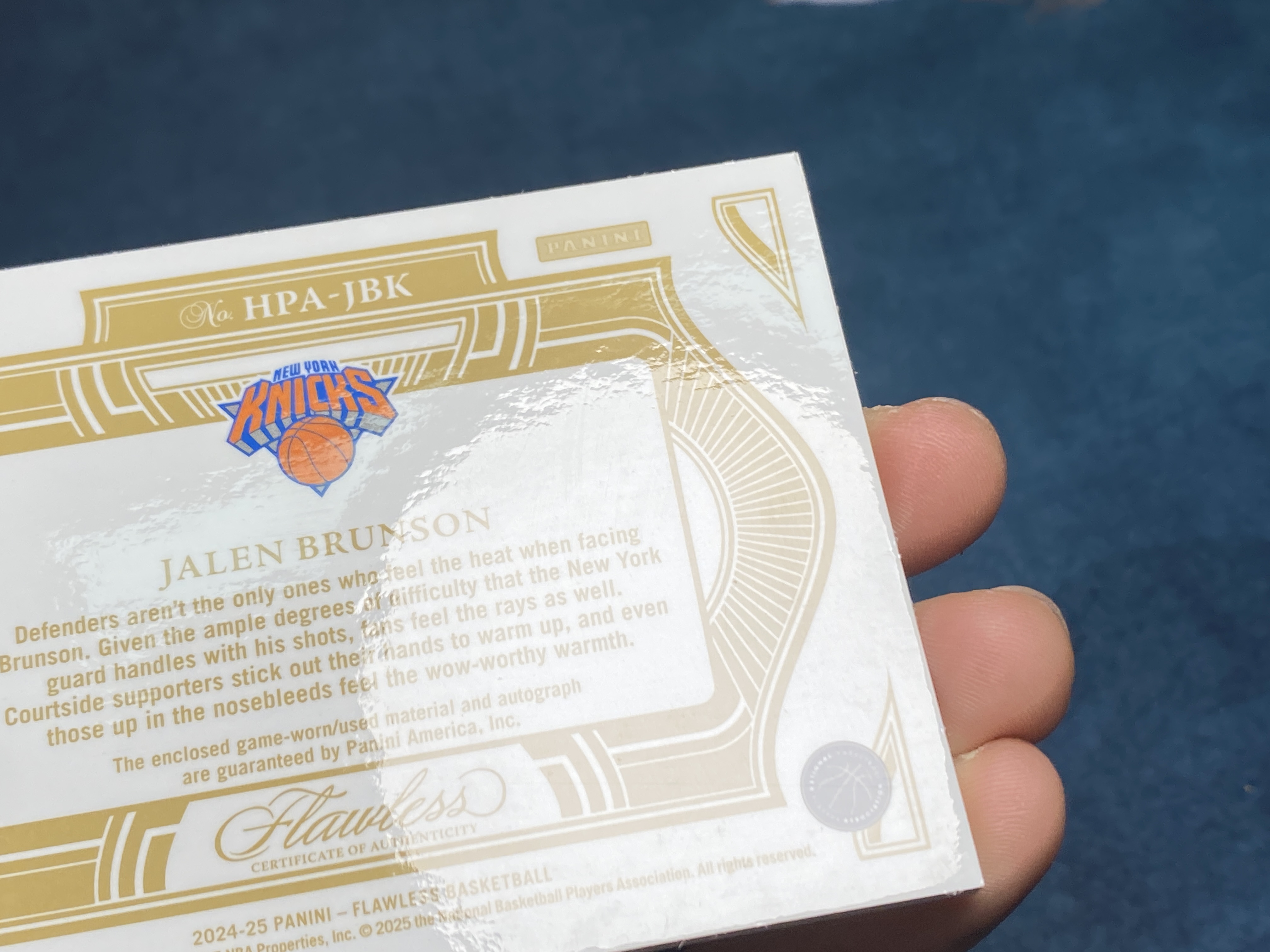 2024-25 Panini Flawless Jalen Brunson 手提 尼克斯 贾伦 布伦森 大头 25编 签字 卡签 四色暴力patch切割 HPA 卡品如图 注意描述 HL