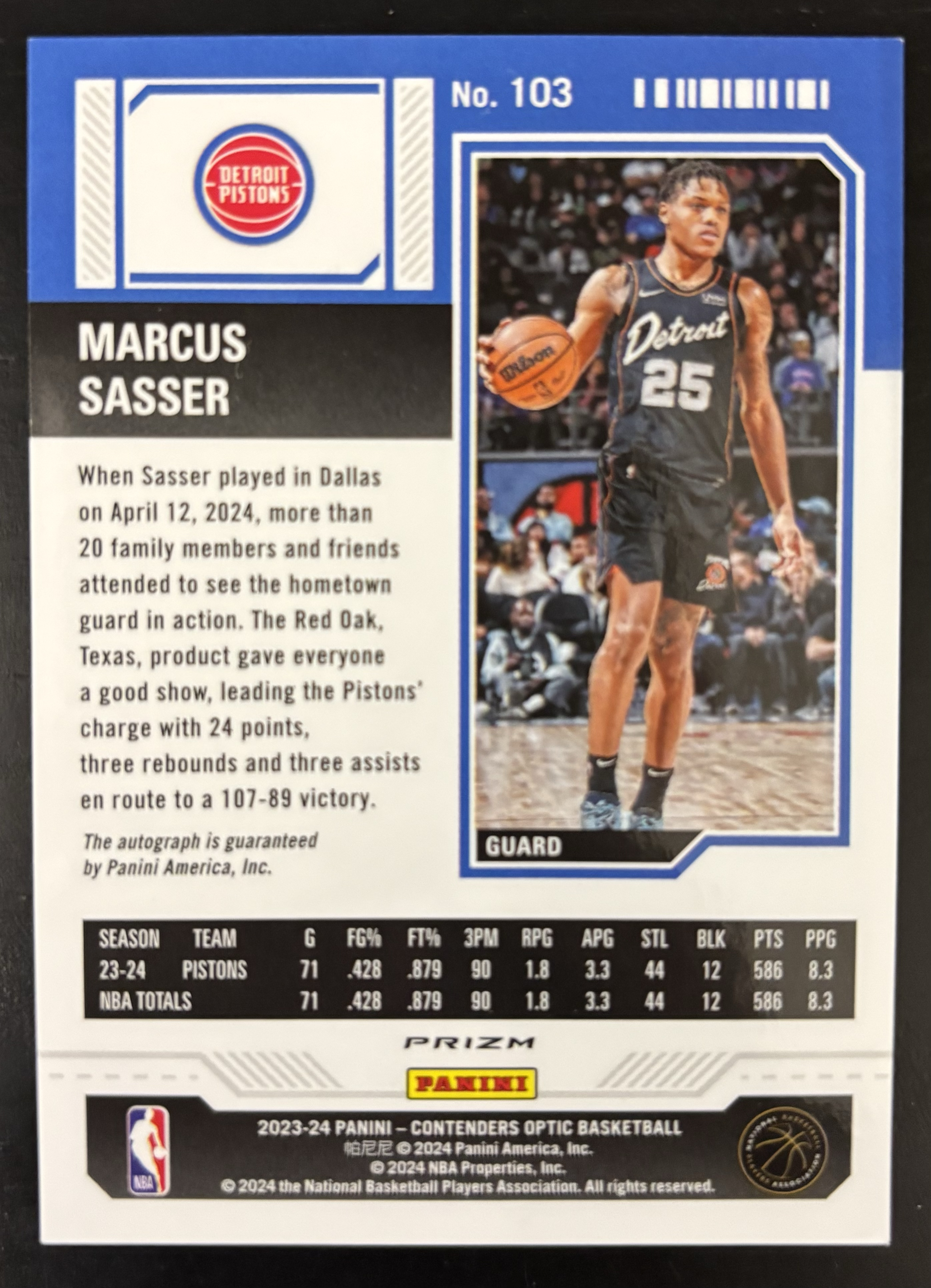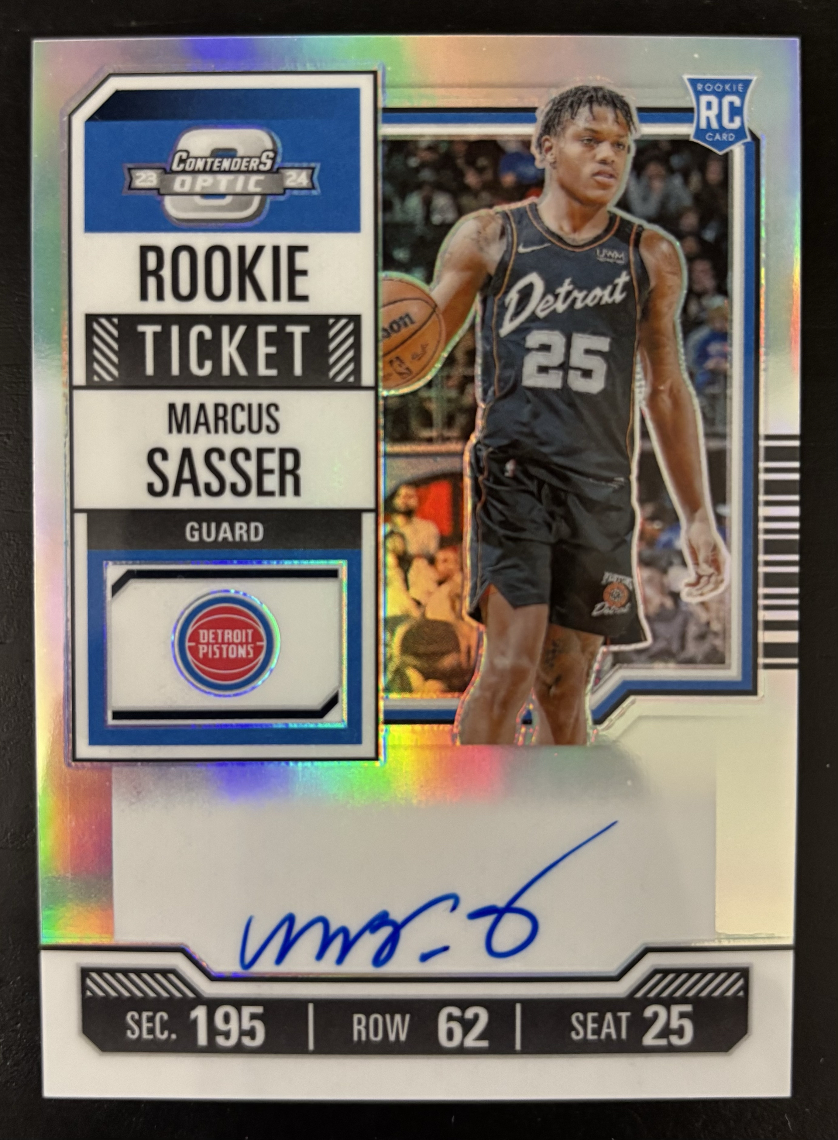 2023-24 PANINI CONTENDERS OPTIC 球票系列活塞新秀RC马库斯萨瑟签字卡卡签正新秀球票签字卡 银折折射 专收凑套必备