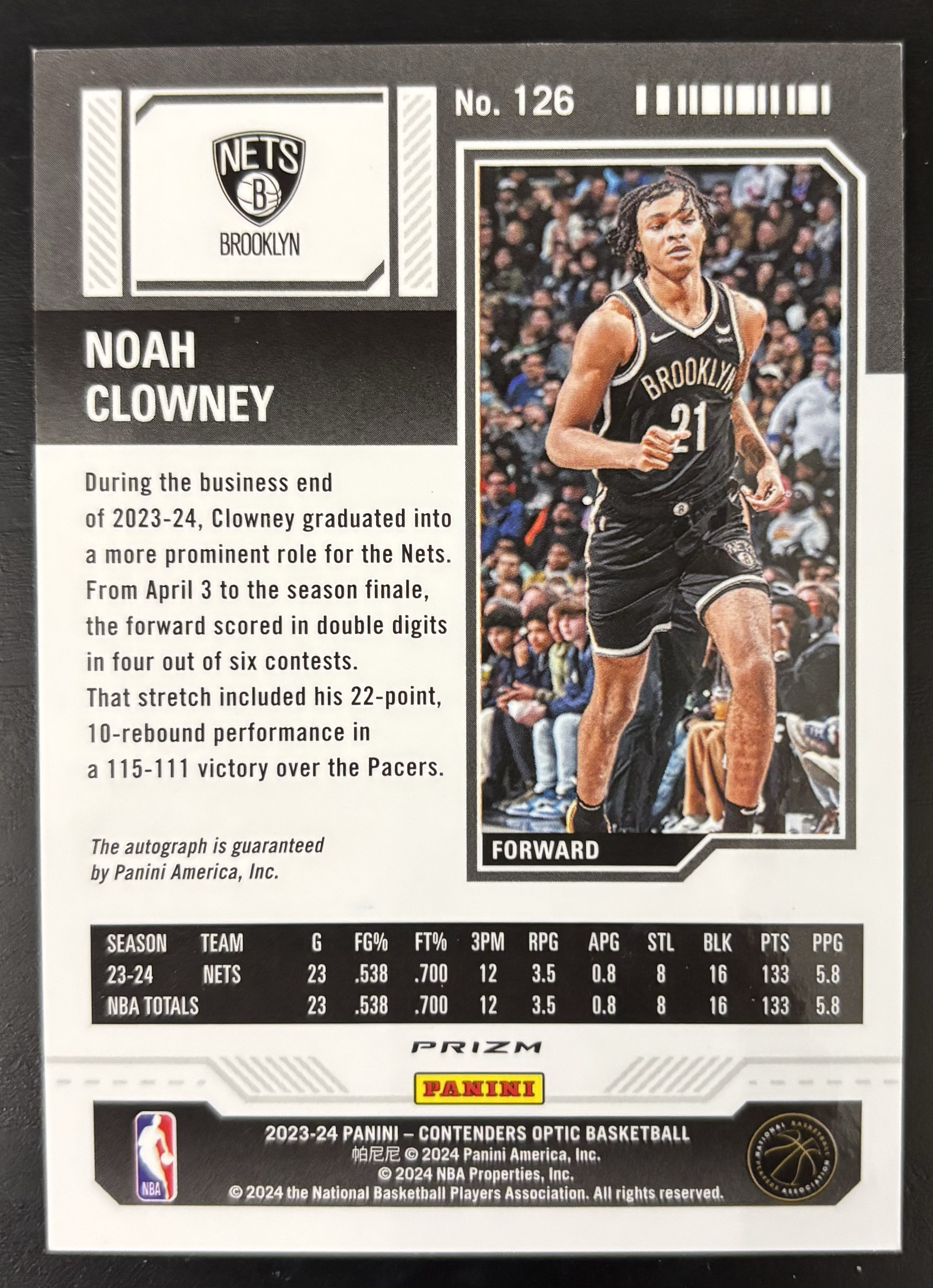 2023-24 PANINI CONTENDERS OPTIC 球票系列篮网新秀RC诺阿克洛尼签字卡 卡签正新秀球票签字卡银折折射