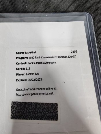 1. 关于墨迹卡品 卡品如图请看仔细,照片很清楚!请看清楚再拍!topps折射系列以及HOOPS折射系列经常会有一道折射横线是印刷问题不属于卡品残次范畴,介意者请勿拍。厚卡有轻微白边属于正常现象!白边白角;镜面、折射系列等卡面划痕、印刷自带痕迹或覆膜不平起泡等卡片自身问题均为通行品。IMM,NOIR,金书等厚卡系列卡品一般,边角经常有小问题介意勿拍!老卡有白边白角属于正常卡品,镜面卡签字经常有横条竖条印刷划痕属于正常通行品相,所有卡有疑问出价前均可以发站内信或者微信索要细节图!评级卡砖上的划痕和破损以及评级砖内的卡有卡品问题一律不属于品相问题!各种prizm base以及银折表面的轻微划痕为正常卡品,要评级追求金标和10分者请直接购买金标和10分评级卡。 需要了解卡品细节,也欢迎联系客服询问。