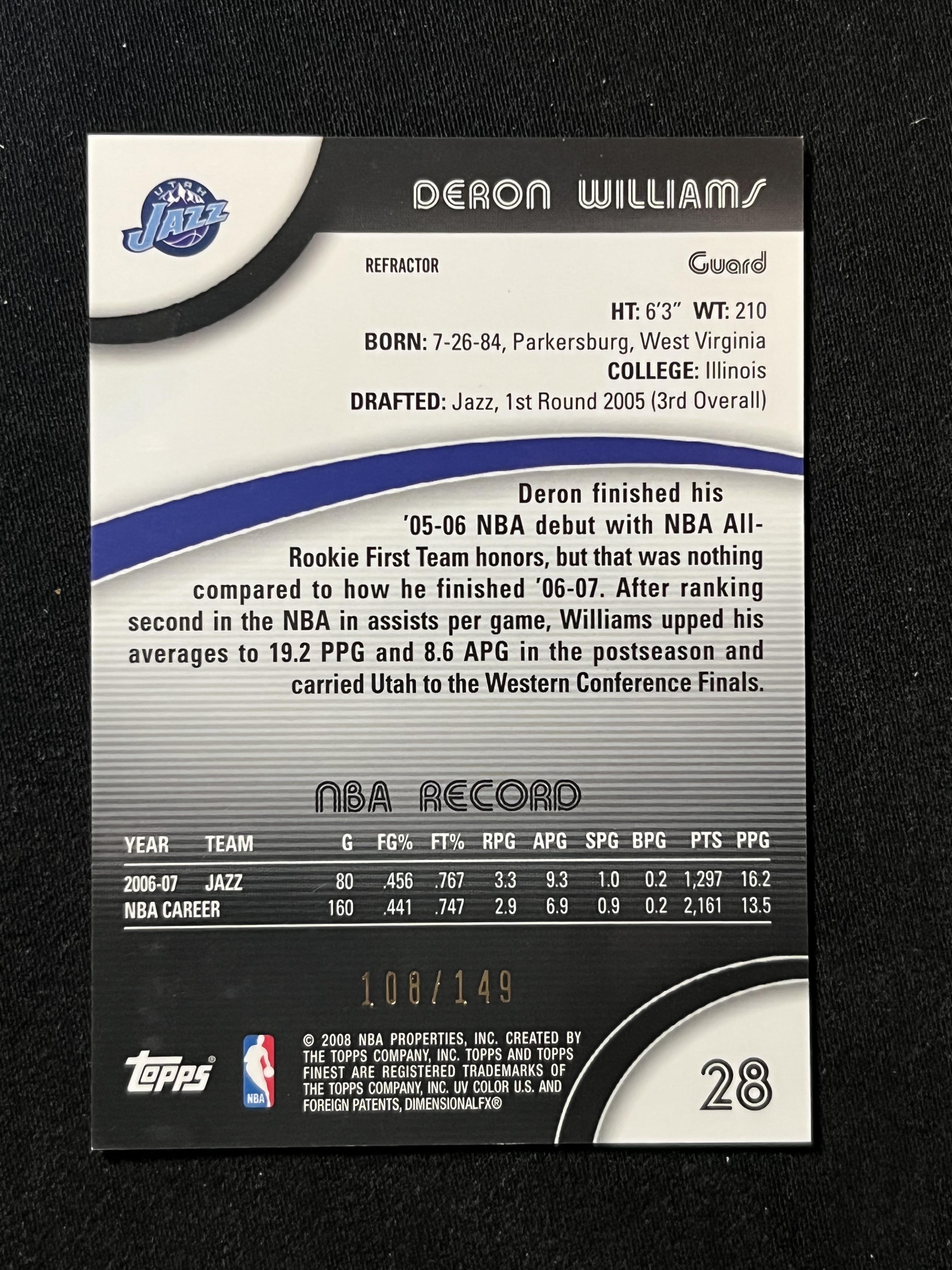 2007-08 TOPPS FINEST 爵士 Deron Williams 德隆 威廉姆斯 BASE 绿折 108/149 gogo