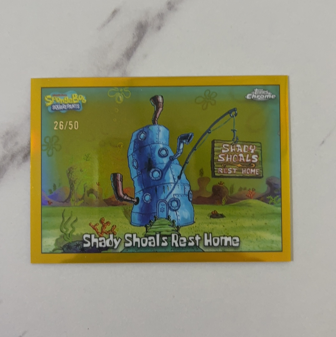 2025 Topps Chrome Shady 海绵宝宝25周年tc系列 沙沙礁岩安养中心 26/50编 正金折 收藏必备 卡品如图 暴风熊代拍 克利