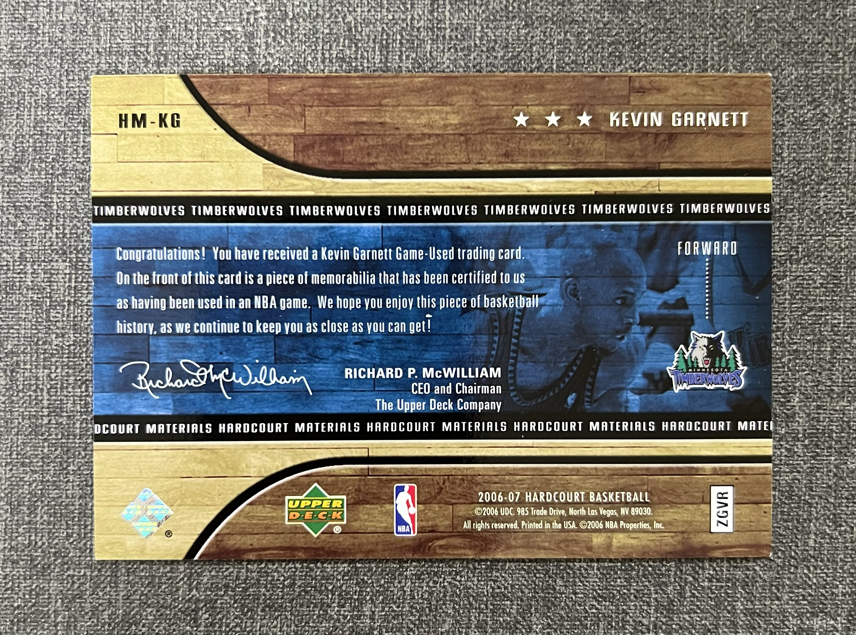 2006-07 Upper Deck Hardcourt Kevin Garnett 木纹 森林狼 加内特 大比例 木板背景 球衣 实物 物料 品相如图