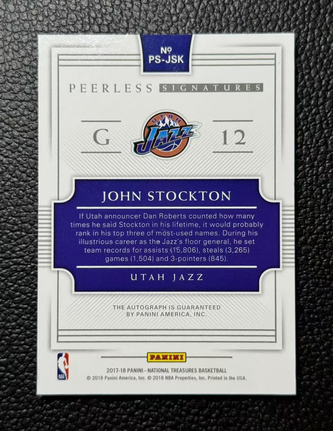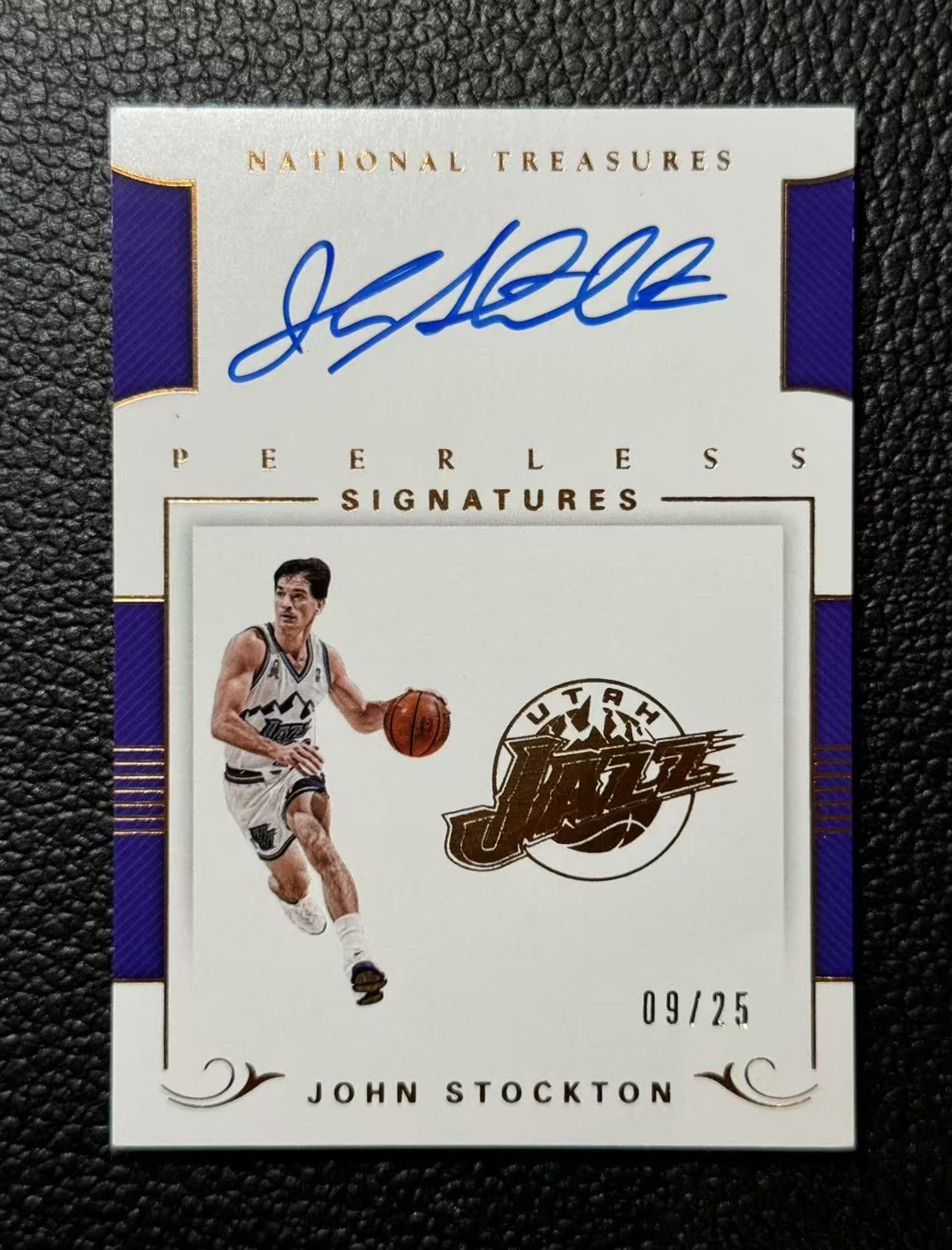2017-18 Panini National Treasures John Stockton 【九九代拍】爵士 约翰 斯托克顿 国宝 签字 卡签 25编 瑕疵如图 收藏必备 谢