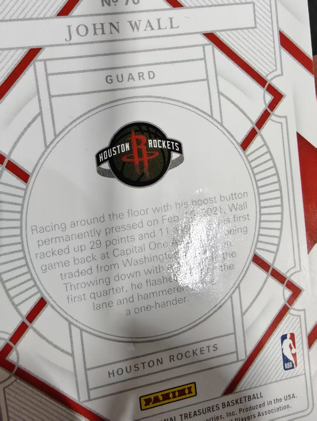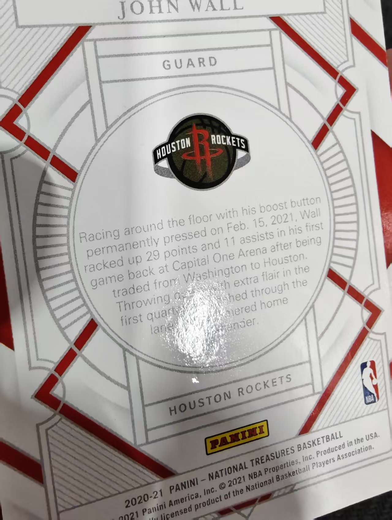 【汽水拍卖】2020-21 panini national treasures john wall 国宝 火箭 约翰 沃尔 99编 瑕疵如图