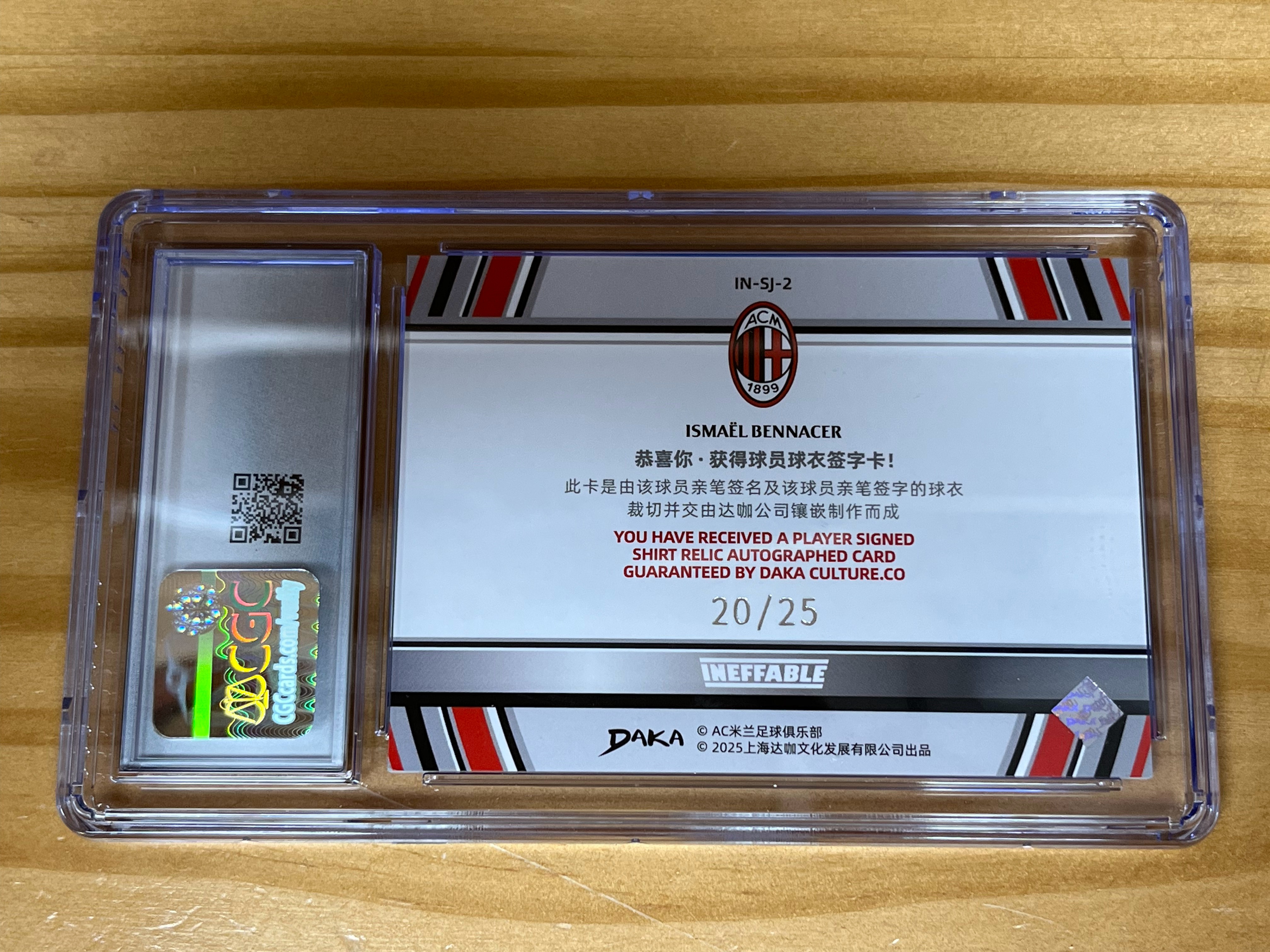 2025 DAKA  AC Milan  HOLOCENE  AC米兰队盒 Ismael Bennace  本纳塞尔 球衣签字卡  银平行 20/25 CGC评级9分    花布袋