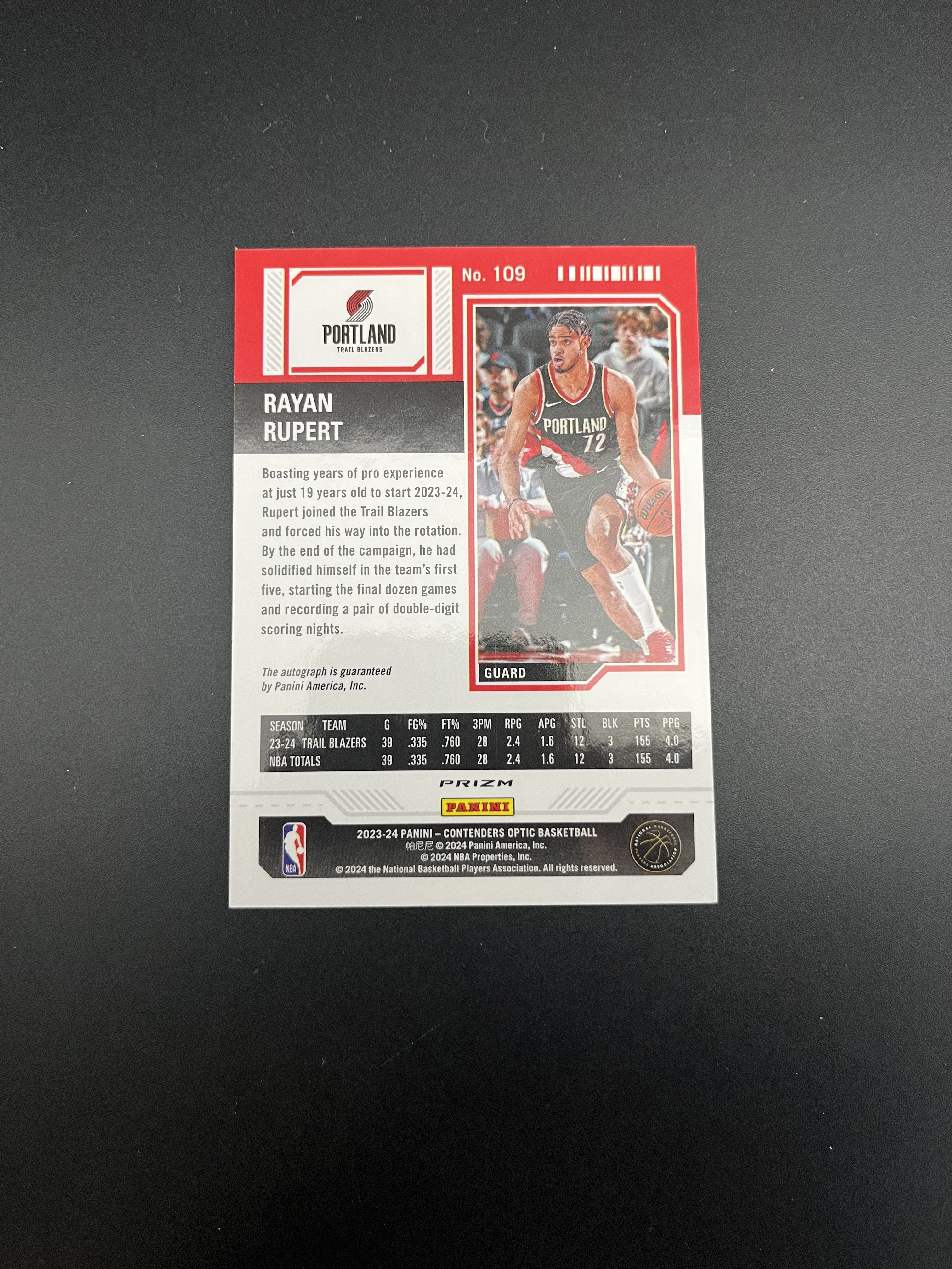 2023-24 Panini Contenders Optic Rayan Rupert 【拉姆代卖】 拉扬 吕佩尔 新秀RC 签字 卡签 银折 折射 球票OP 卡品如图【h哥】