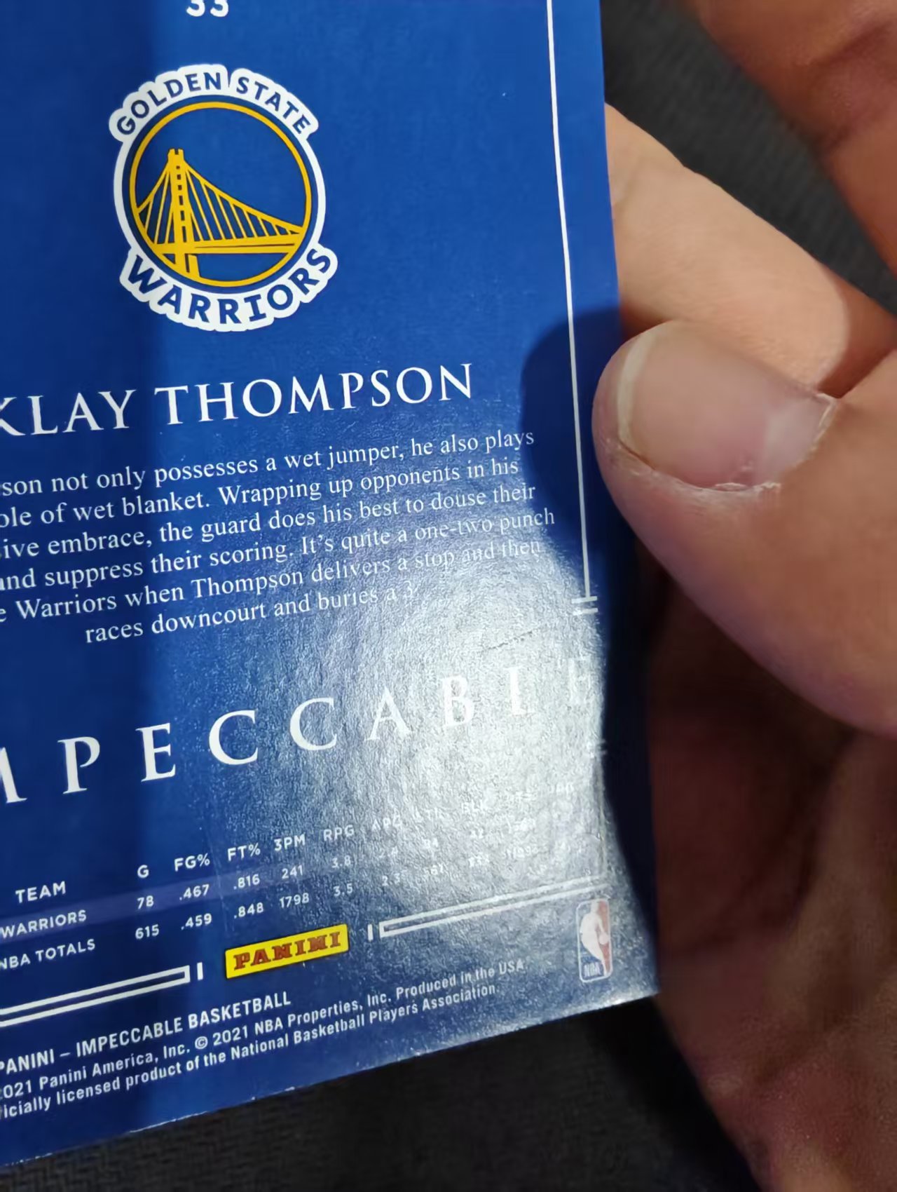 1. 关于墨迹卡品 卡品如图请看仔细,照片很清楚!请看清楚再拍!topps折射系列以及HOOPS折射系列经常会有一道折射横线是印刷问题不属于卡品残次范畴,介意者请勿拍。厚卡有轻微白边属于正常现象!白边白角;镜面、折射系列等卡面划痕、印刷自带痕迹或覆膜不平起泡等卡片自身问题均为通行品。IMM,NOIR,金书等厚卡系列卡品一般,边角经常有小问题介意勿拍!老卡有白边白角属于正常卡品,镜面卡签字经常有横条竖条印刷划痕属于正常通行品相,所有卡有疑问出价前均可以发站内信或者微信索要细节图!评级卡砖上的划痕和破损以及评级砖内的卡有卡品问题一律不属于品相问题!各种prizm base以及银折表面的轻微划痕为正常卡品,要评级追求金标和10分者请直接购买金标和10分评级卡。 需要了解卡品细节,也欢迎联系客服询问。