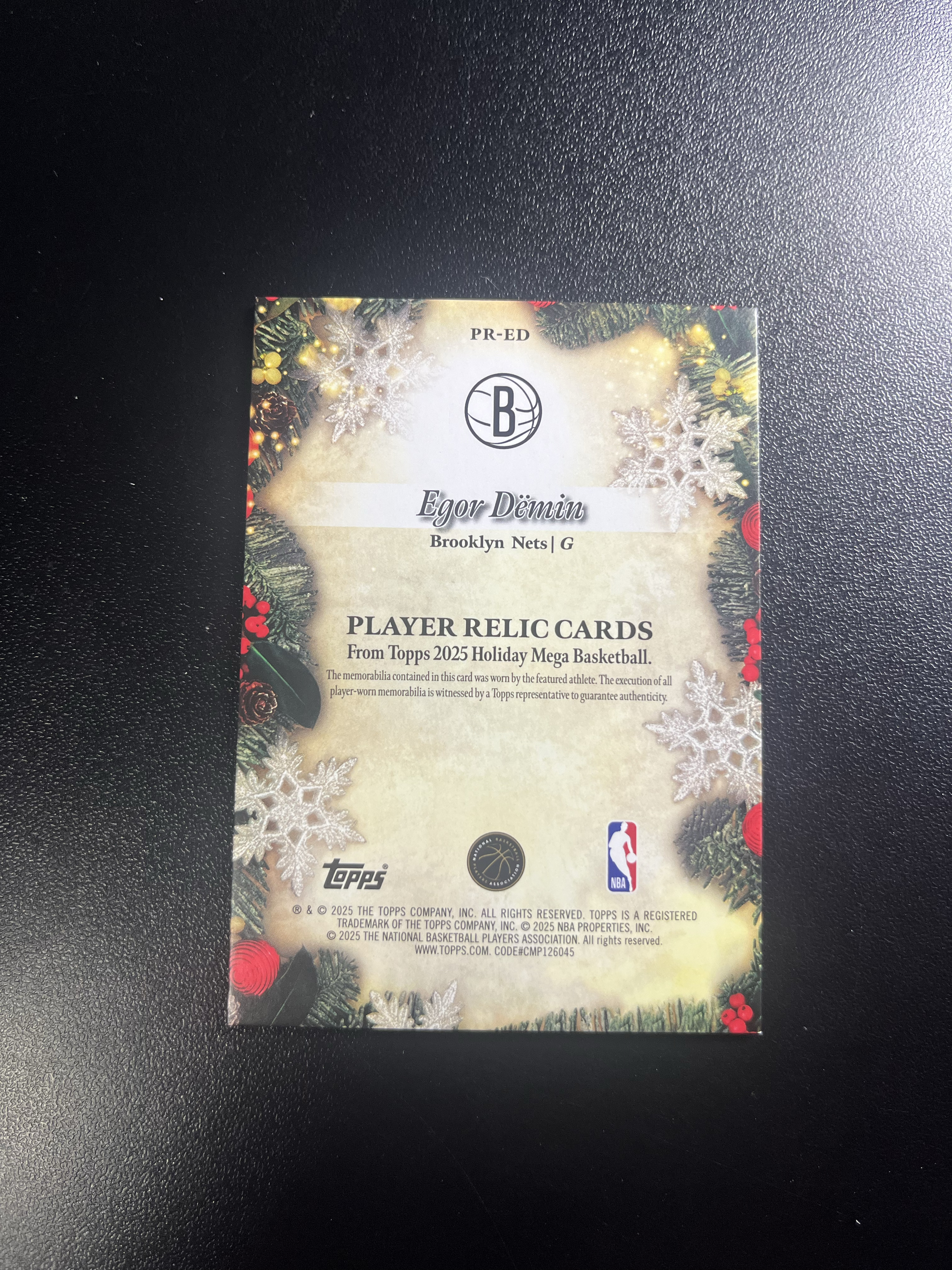 2025-26 Panini Topps Egor Demin RC 【拉姆代卖】假日系列 新秀RC 叶戈尔 杰明 篮网 小窗 球衣物料 卡品如图 鲁【ring】