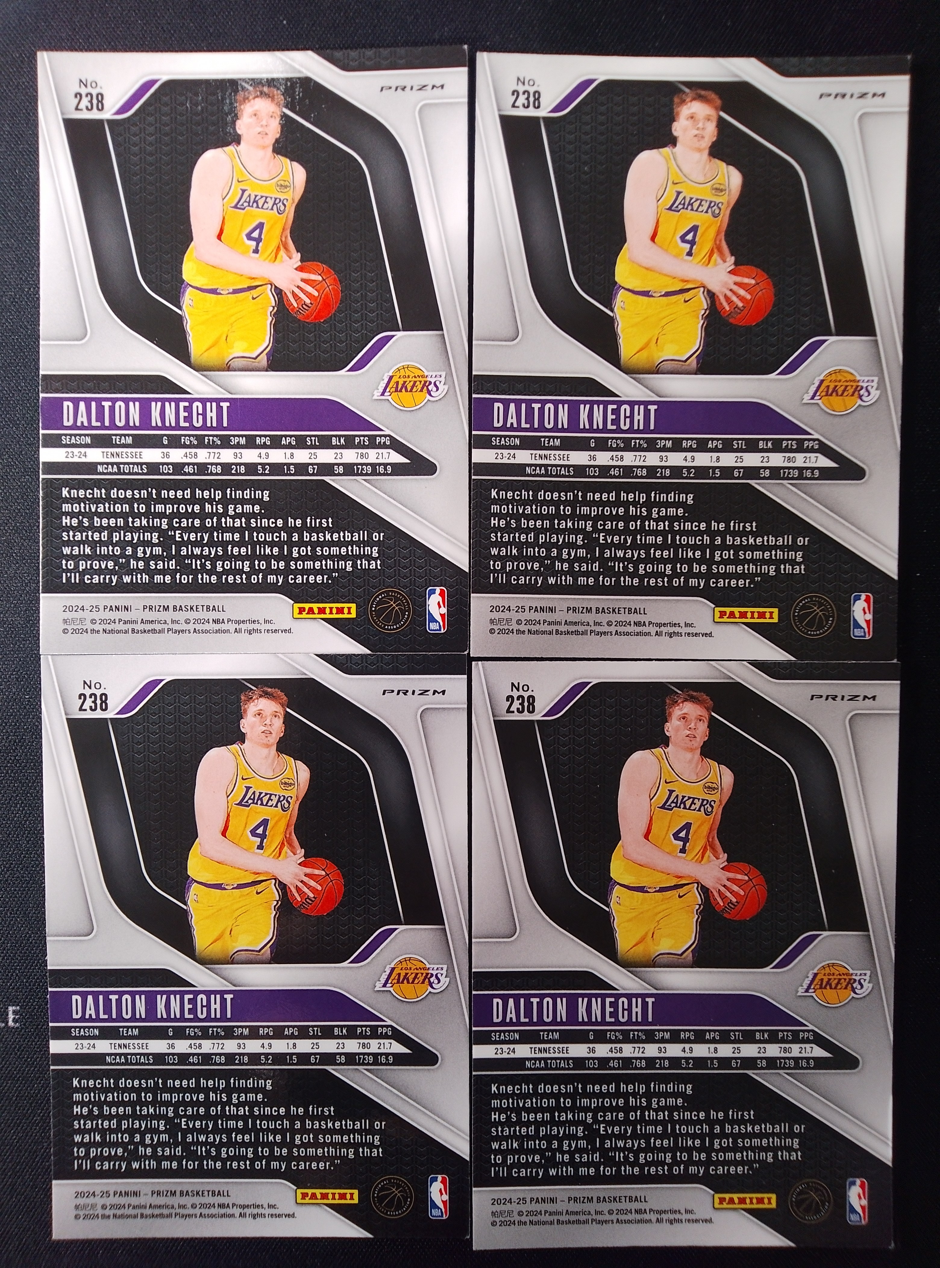 4.品相说明:(1)木盒、国宝、IMM、手提、NOIR、小书、金书、小真金、黑曜石、Encased等厚卡或老卡老系列均有正常白边白角,Prizm、Optic、Select、Flux、Chrome等折射系列薄卡有小划痕、小印记或非人为卡片制作印刷的问题属于正常通行品,镜面系列有小划痕属于通行品相。所有卡片不保证金标,要评级追求金标者请直接购买金标,请有强迫症、品相控的卡迷绕道和谨慎出价;(2)原封卡有明显大瑕疵会标出;(3)所有拍品均为实图专业设备拍摄,参与竞价视为接受卡片的品相,不作特殊说明的都是通行品,如有明显大瑕疵会拍照说明;(4)由于拍摄卡片的角度以及光线的限制,若您对卡片品相仍存在疑问,可在【截标前】向卖家咨询提供更多细节图。