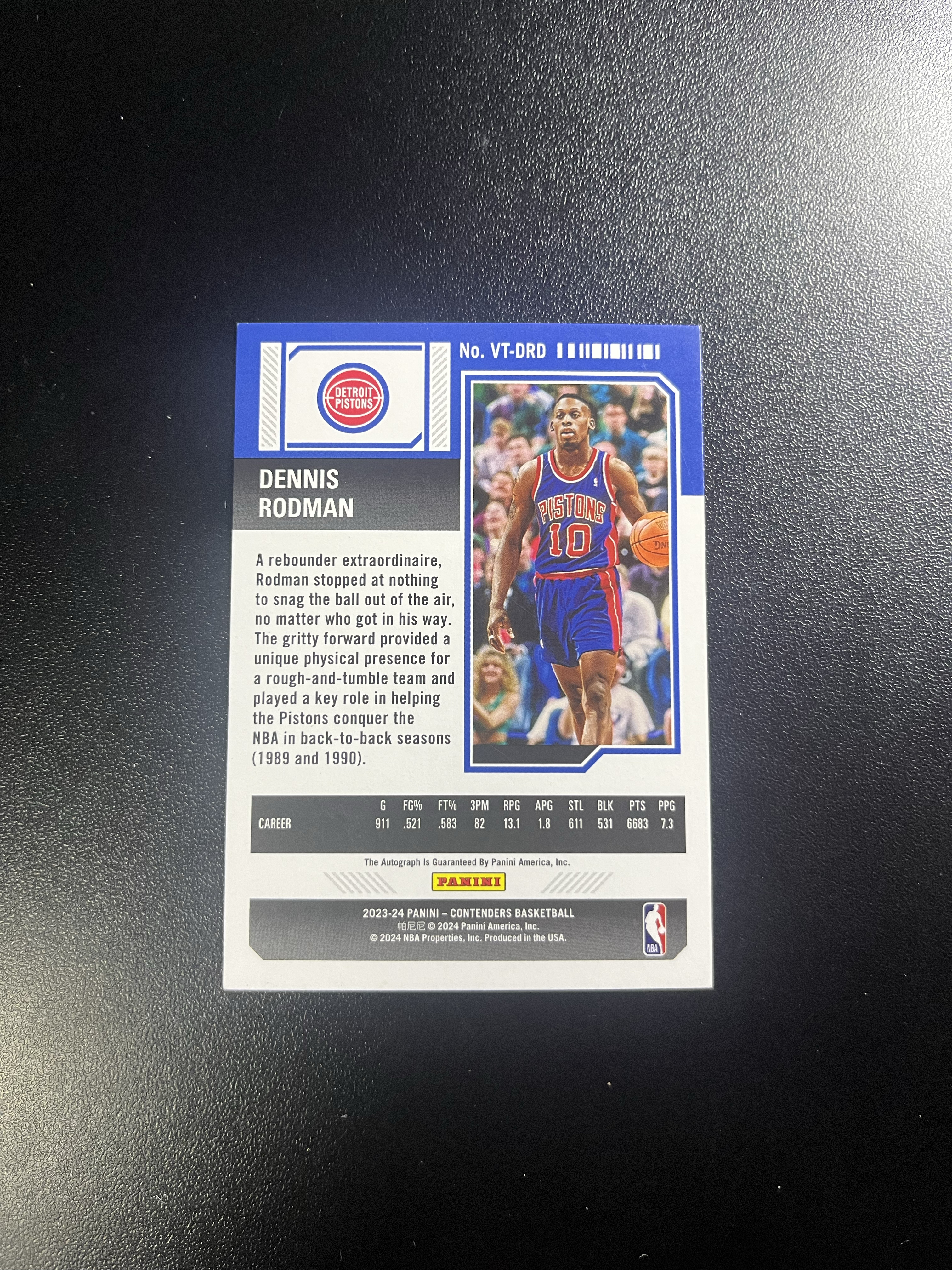 2023-24 Panini Contenders Dennis Rodman 【拉姆代卖】大虫 罗德曼 活塞 公牛 篮板王 球票 49编 卡签 签字 卡品如图 鲁【ring】