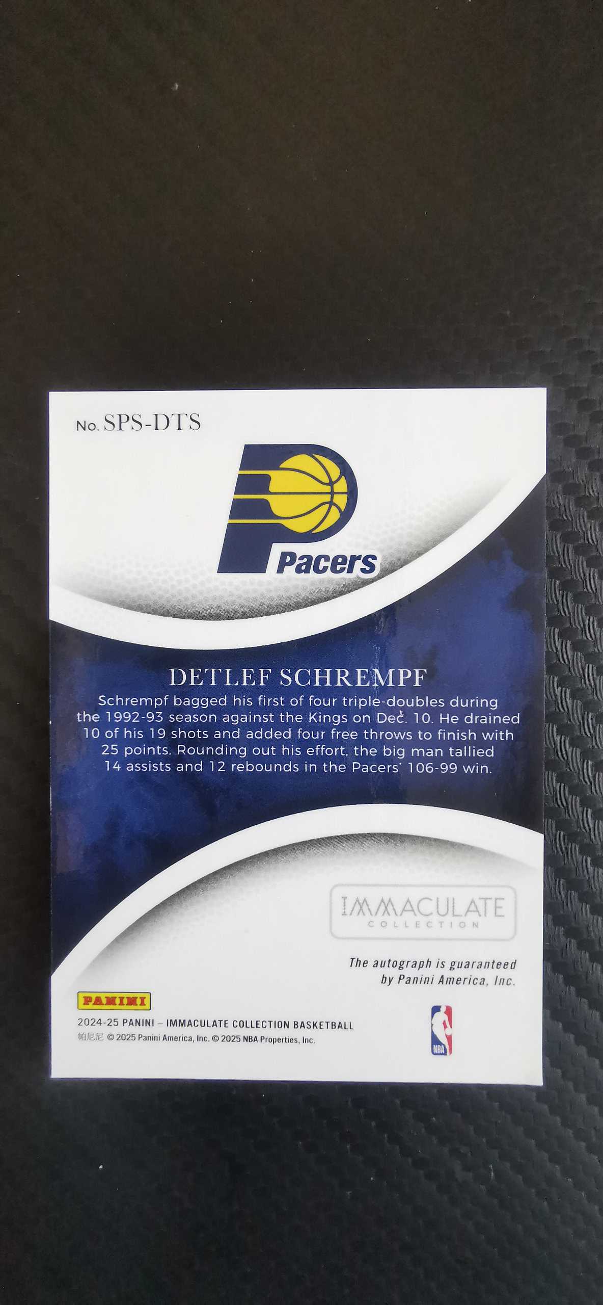 2024-25 Panini Immaculate Detlef Schrempf 签字 93/99 超音速 德特雷夫 施拉姆夫 德国 传奇名宿 高端系列 卡签 卡品如图 瓜11.25