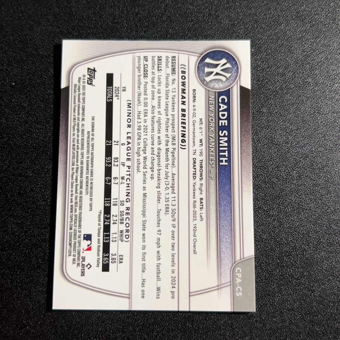 2024 Topps bowman chrome 【锡安代卖】 棒球mlb 1st新秀卡签 纽约扬基 凯德 史密斯 cade smith 小恶魔