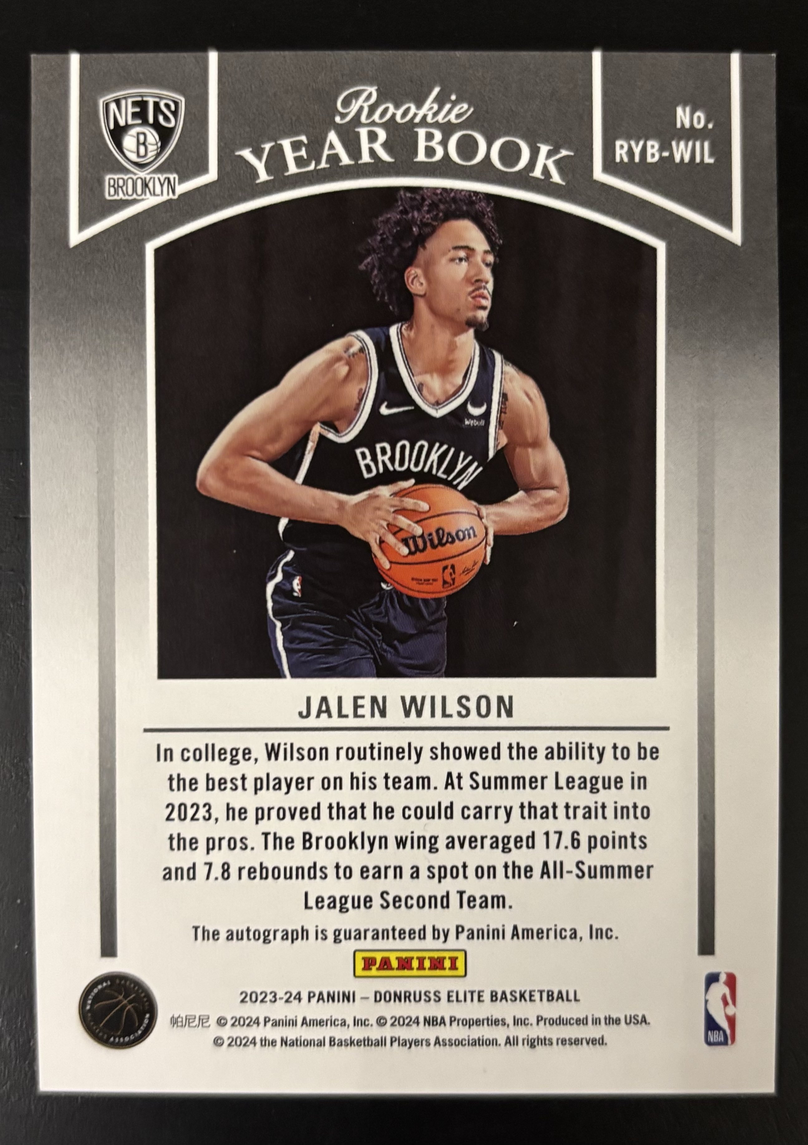 2023-24 panini donruss elite jalen wilson 杜蕾斯精英篮网 杰伦 威尔逊 RC 新秀year book签字瑕疵看图 专收必备