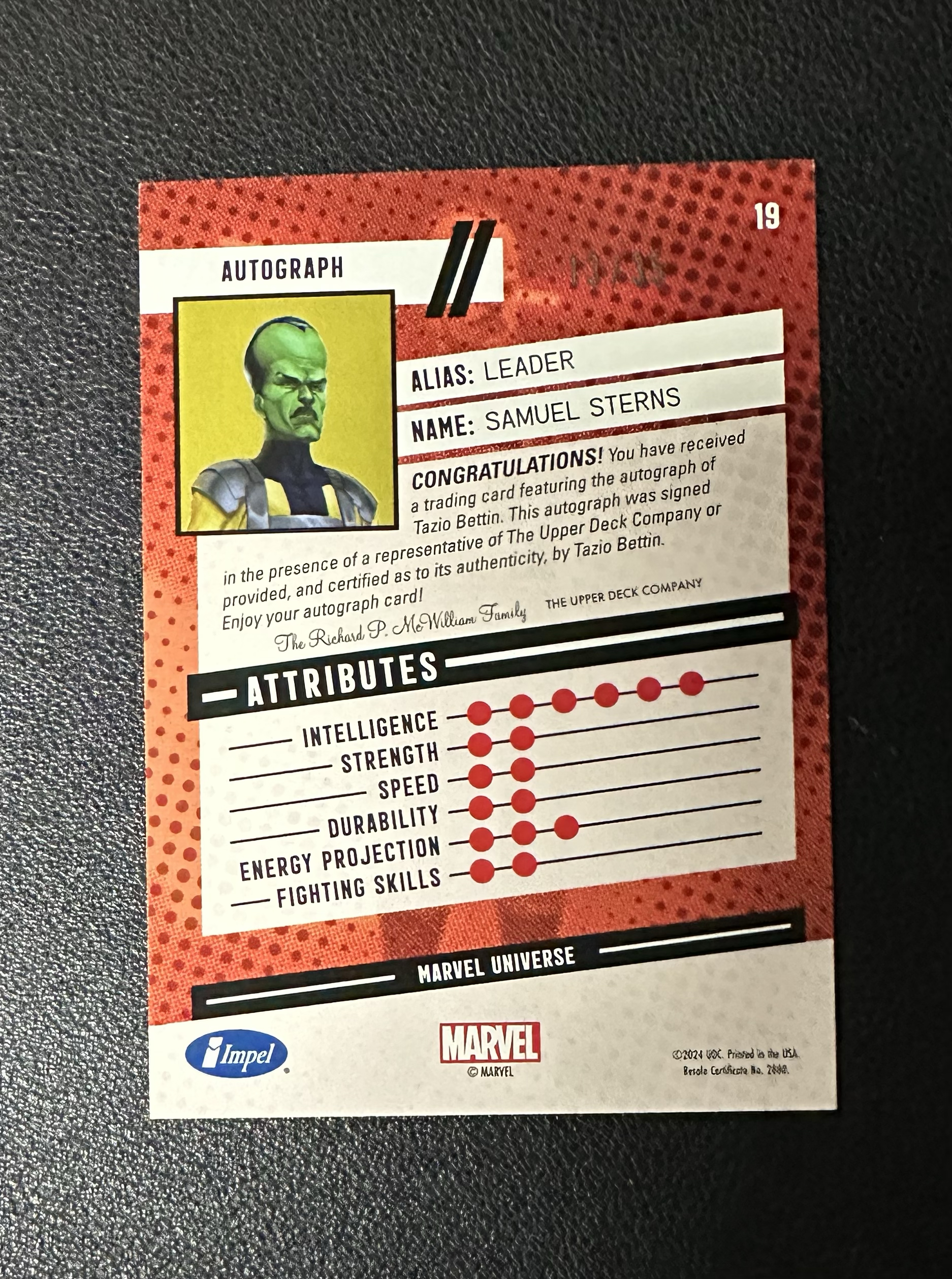 2024 Upper Deck Marvel (MCU) 蜘蛛侠演绎 Leader 大头目Impel复古特卡13/35编签字 贴签  UD漫威漫画蜘蛛侠Renditions 卡品如图