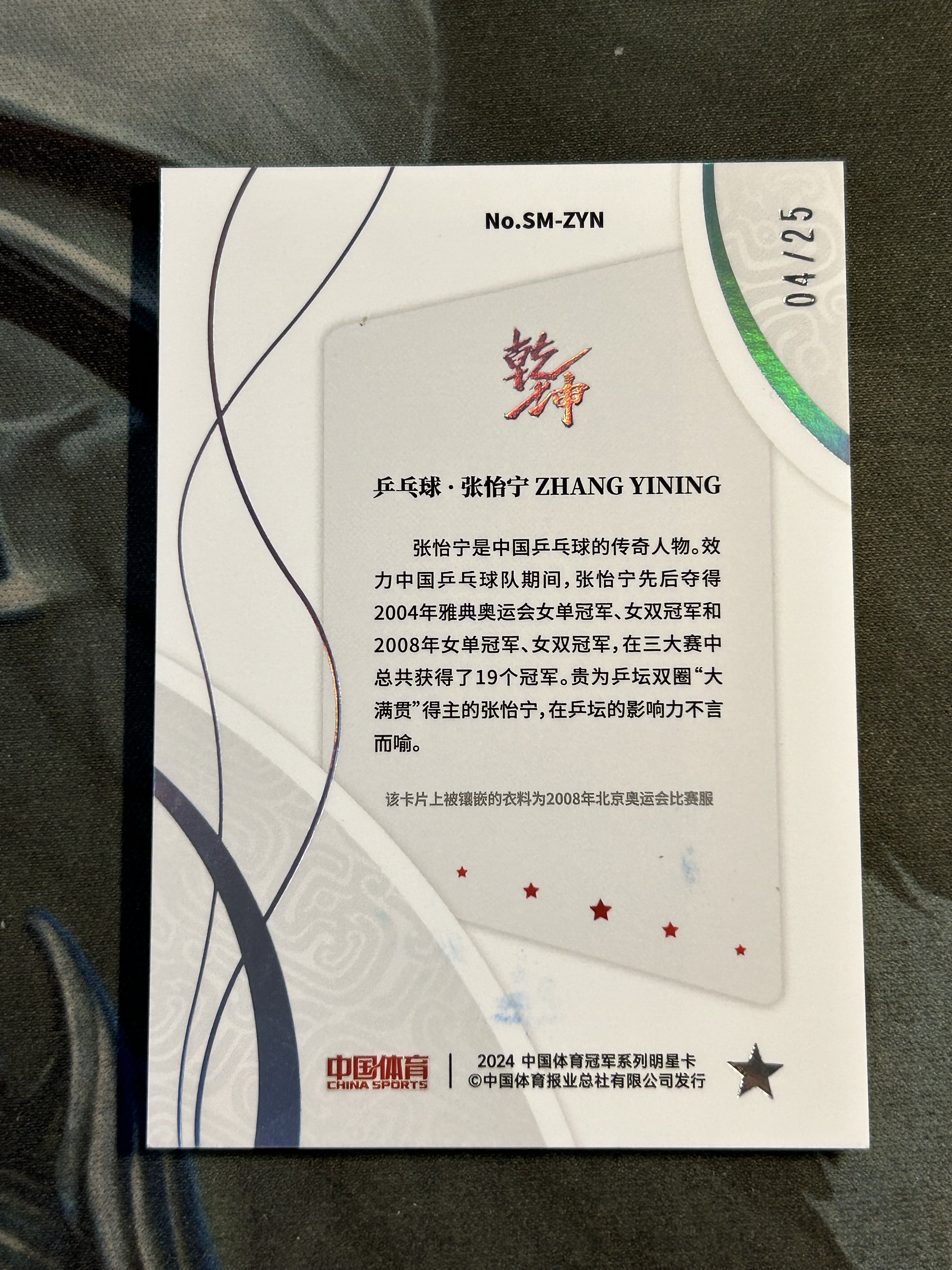 2024 中国体育 冠军系列明星卡 乾坤 SPORTS MOGUL 球衣实物 限量/25编 ZHANG YINING 张怡宁 乒乓球 (品见大图,小瑕)《苏州卡通》Z【XW】
