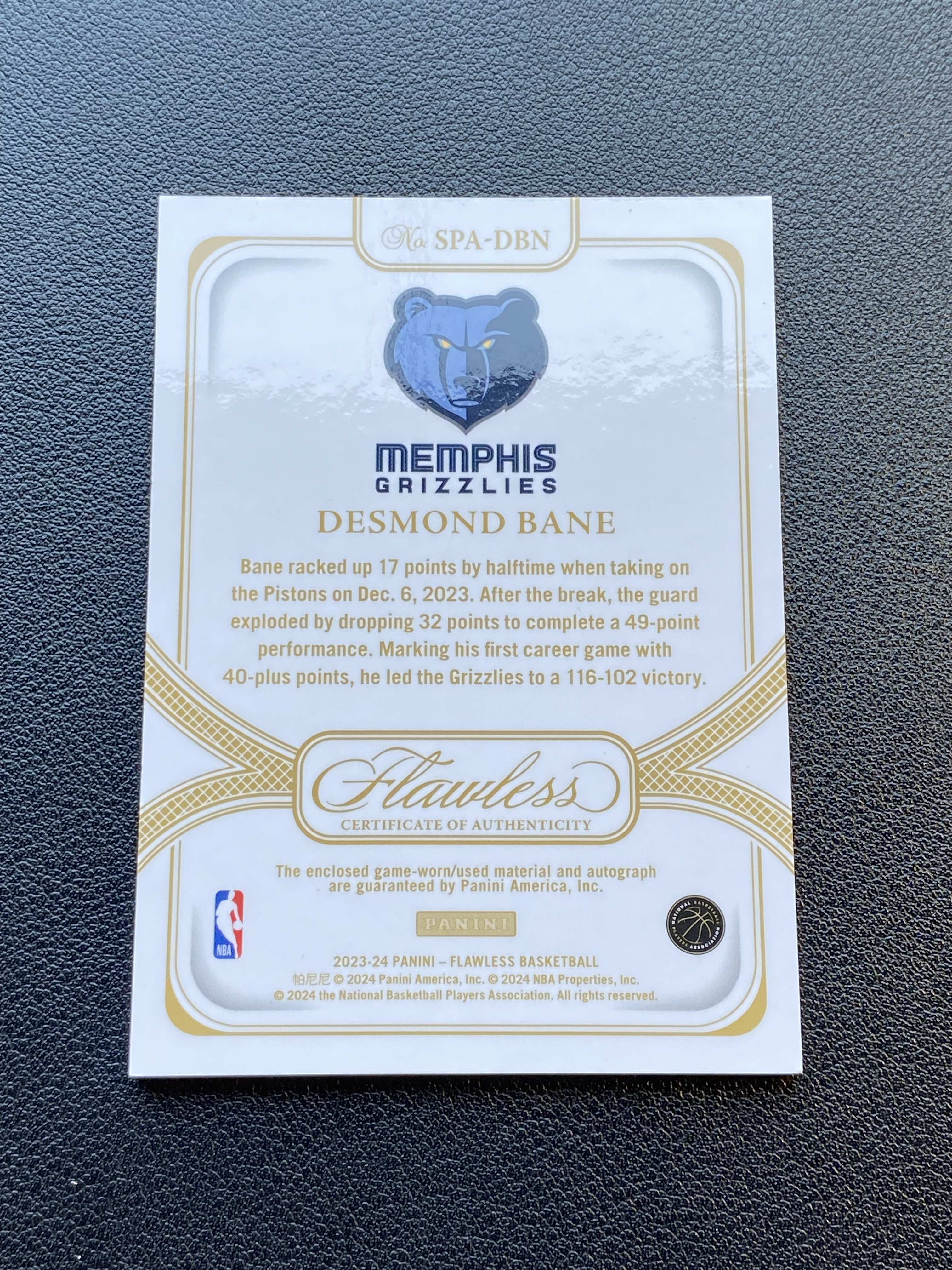 2023-24 Panini Flawless Desmond Bane 手提系列 灰熊 戴斯蒙德 贝恩 小窗patch SPA 签字 卡签 墨迹湛蓝 9/25编 送砖 拍卡请看描述 「粉总」