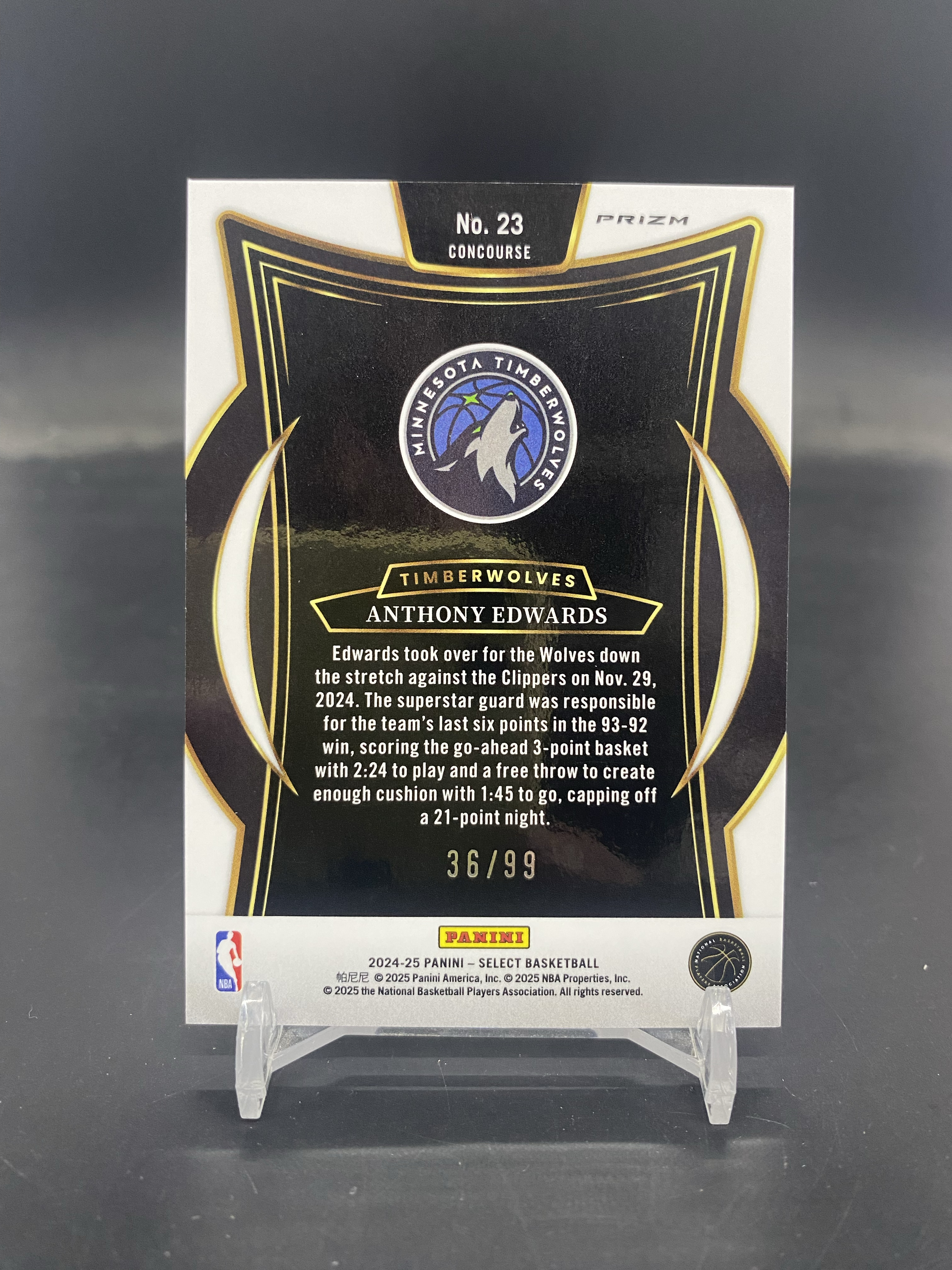 2024-25 Panini Select Anthony Edwards 森林狼 安东尼 爱德华兹 华子 36/99编 白波纹折 1级一级 折射 印痕如图AR-49「80」