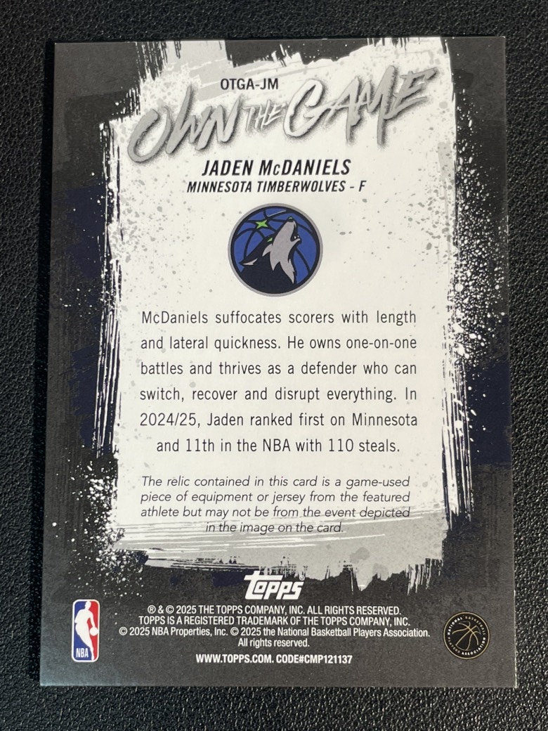 2025 Topps NBA Flagship Jaden McDaniels 24 杰登 麦克丹尼尔斯 森林狼 掌控比赛 球衣 物料 微瑕如图 卡品如图 尖叫代拍 ChA