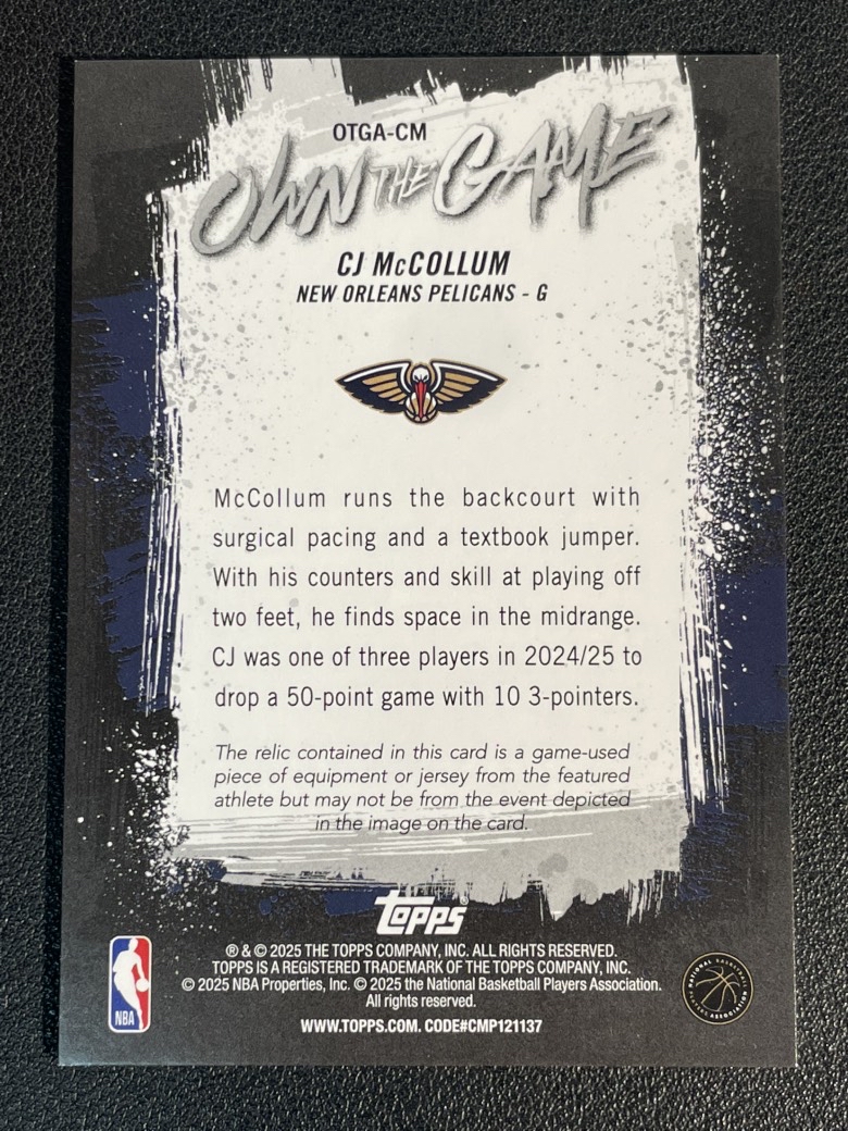 2025 Topps NBA Flagship CJ McCollum 47 CJ 麦科勒姆 鹈鹕 折射 银折 掌控比赛 球衣 物料 微瑕如图 卡品如图 封印