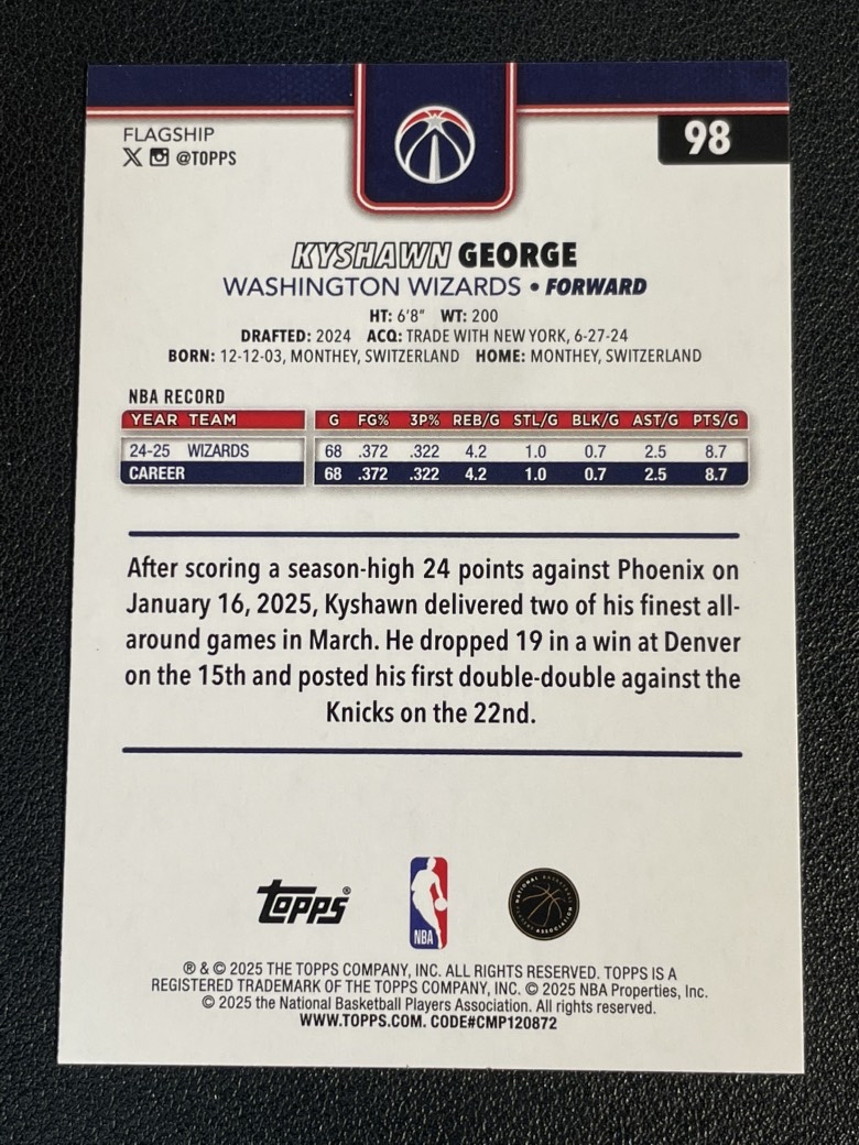 2025 Topps NBA Flagship Kyshawn George 62 凯肖恩 乔治 奇才 折射 铜折 2025编 微瑕如图 卡品如图 fc白