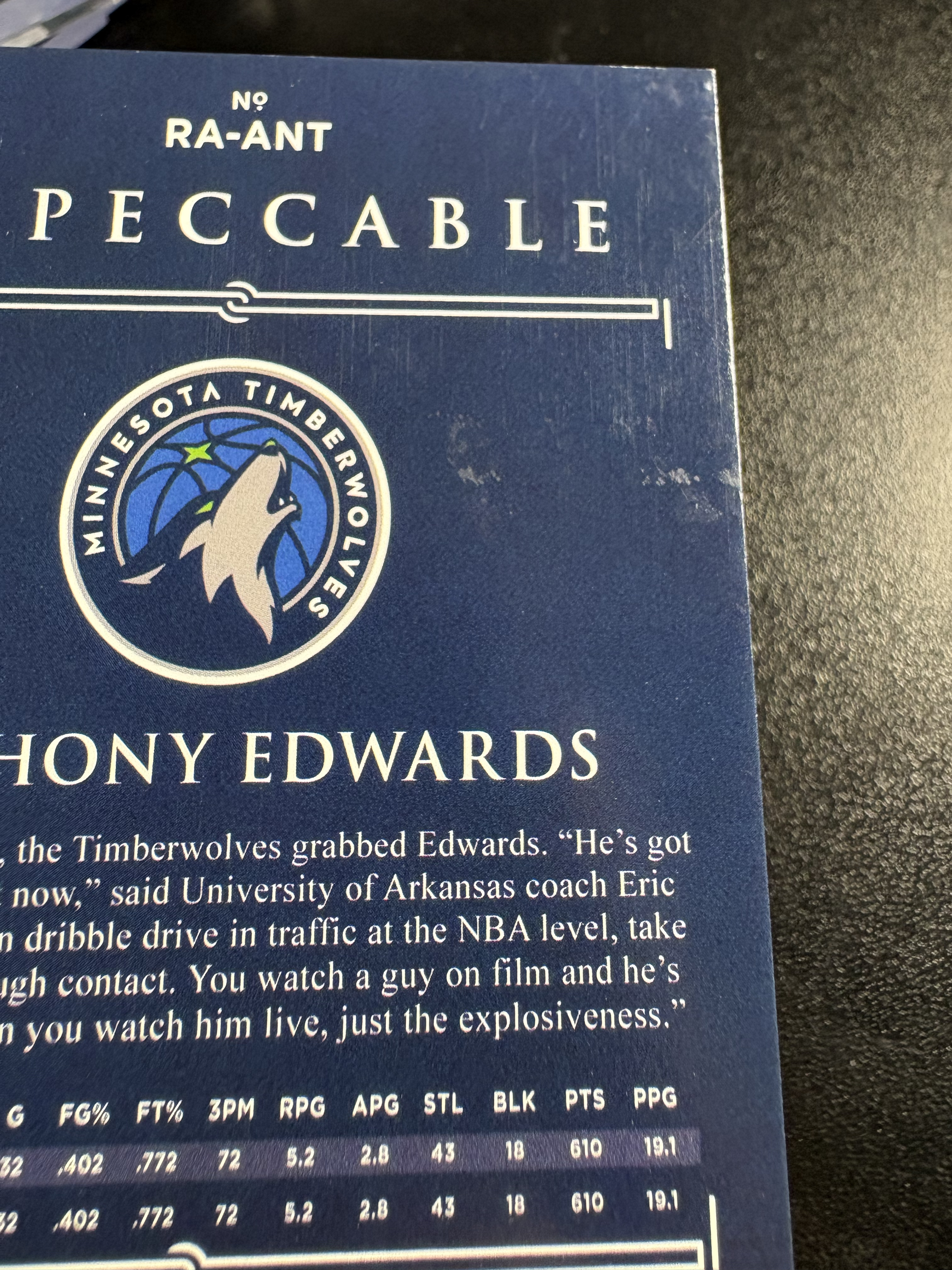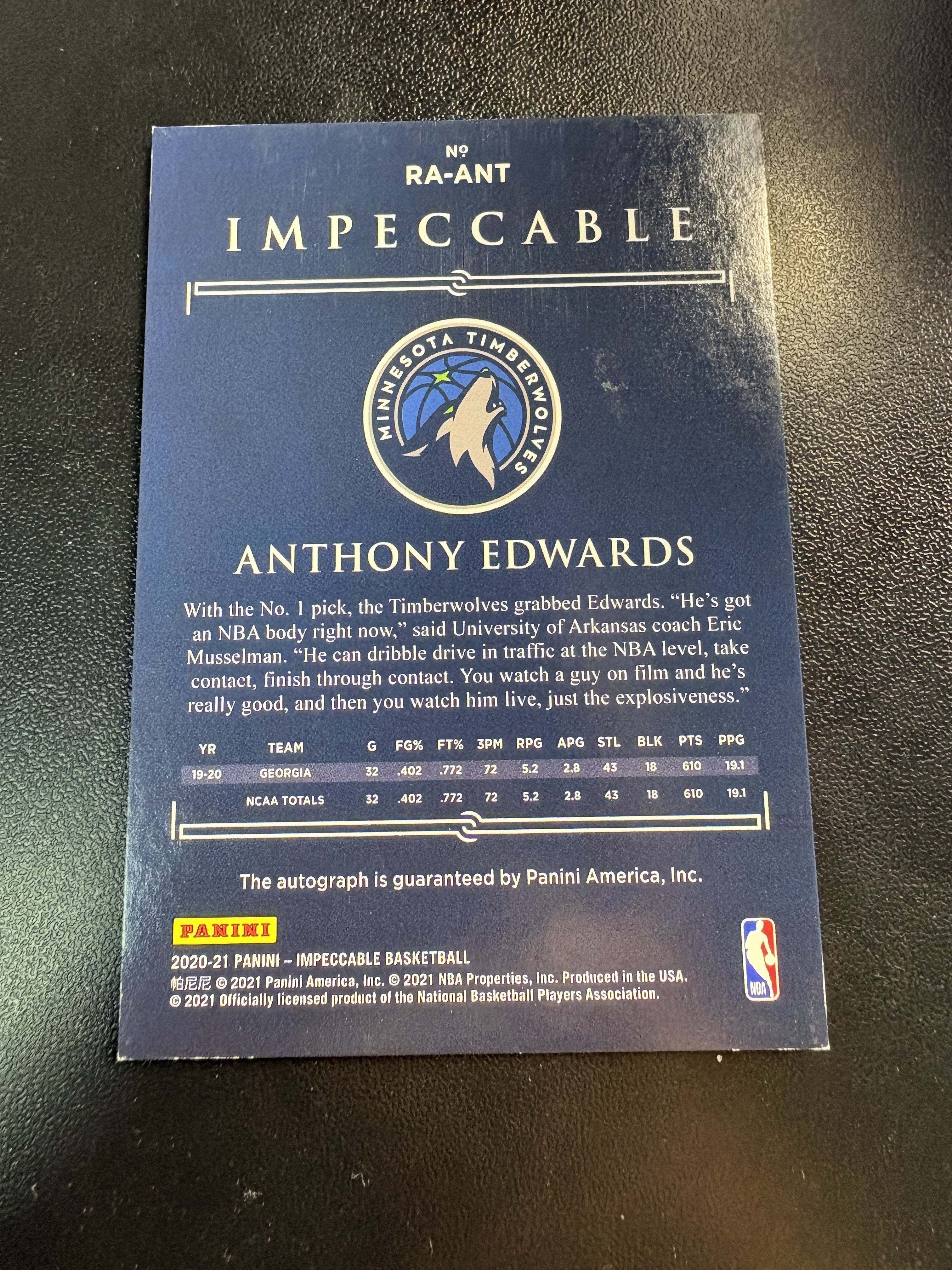 2020-21 Panini Impeccable Anthony Edwards 【拉姆代卖】 小真金 森林狼 安东尼爱德华兹 华子 新秀RC 签字卡签 88编 卡品如图 【WeChat】