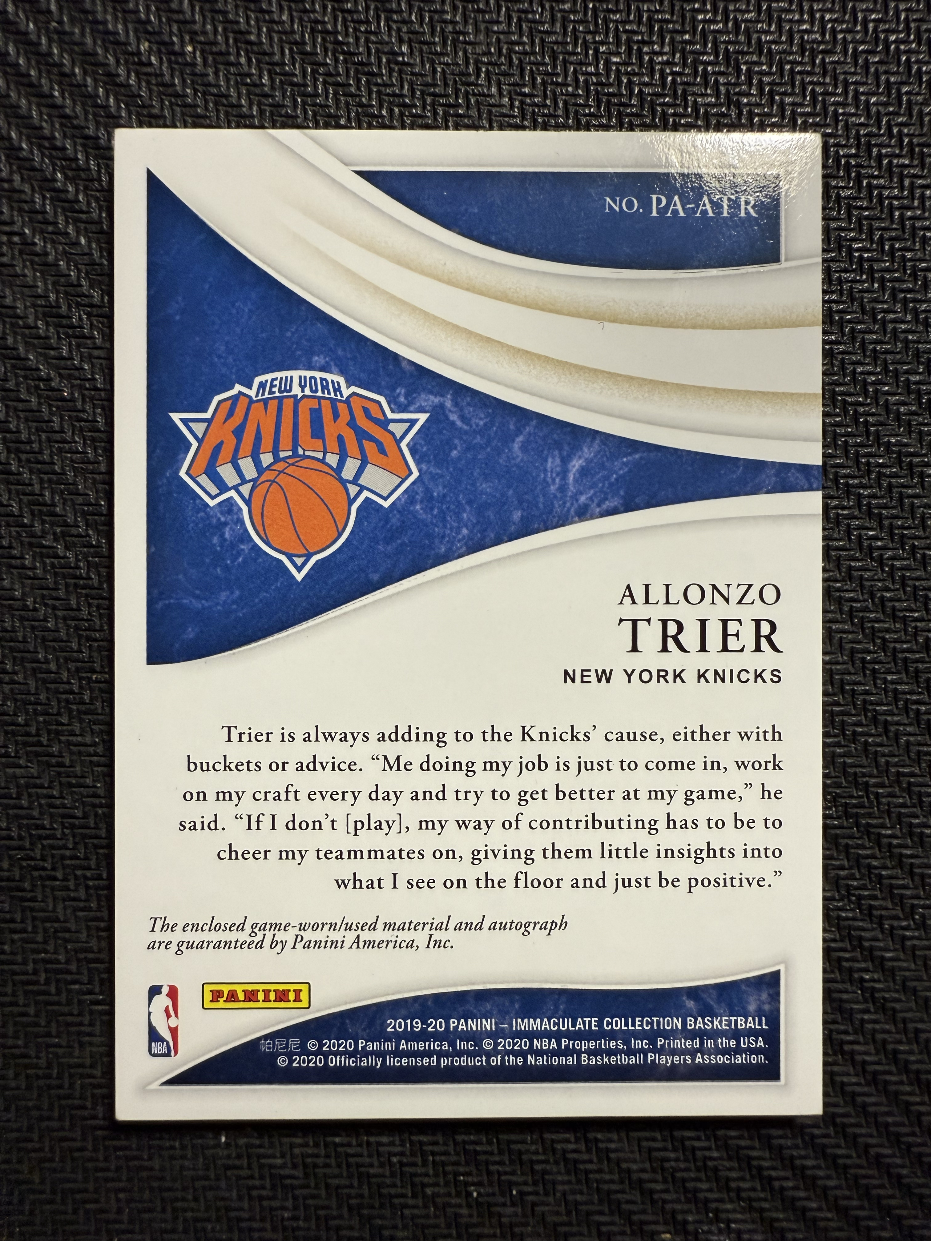 2019-20 Panini Immaculate Collection Allonzo Trier 【九九代拍】尼克斯 阿朗佐 特里尔 imm 签字 卡签 99编 球衣 瑕疵如图 收藏必备 LU冠希