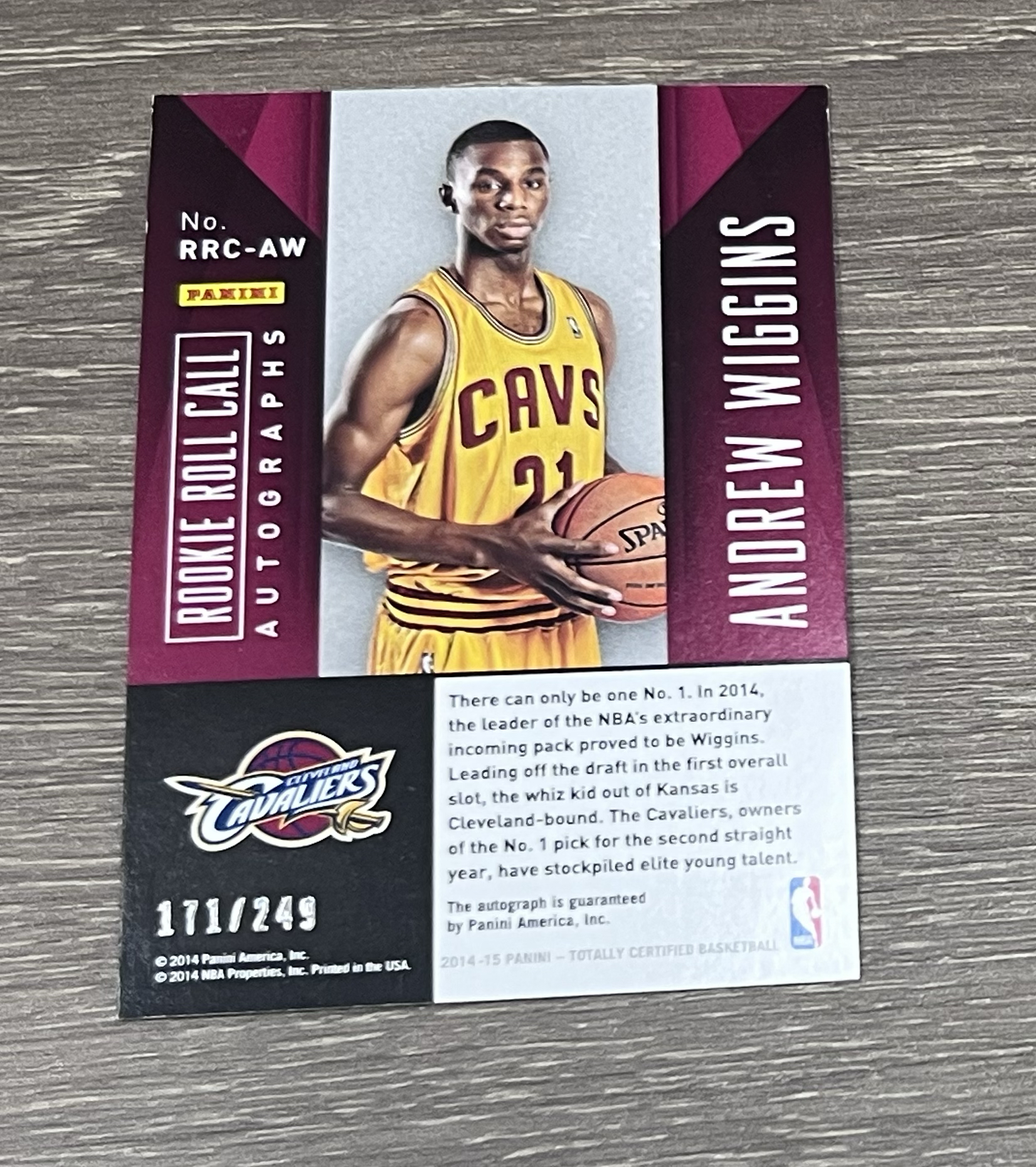 2014-15 Panini Totally Certified Andrew Wiggins RC 安德鲁 维金斯 249编 新秀 RC 签字 卡签 卫生巾 骑士 篮球